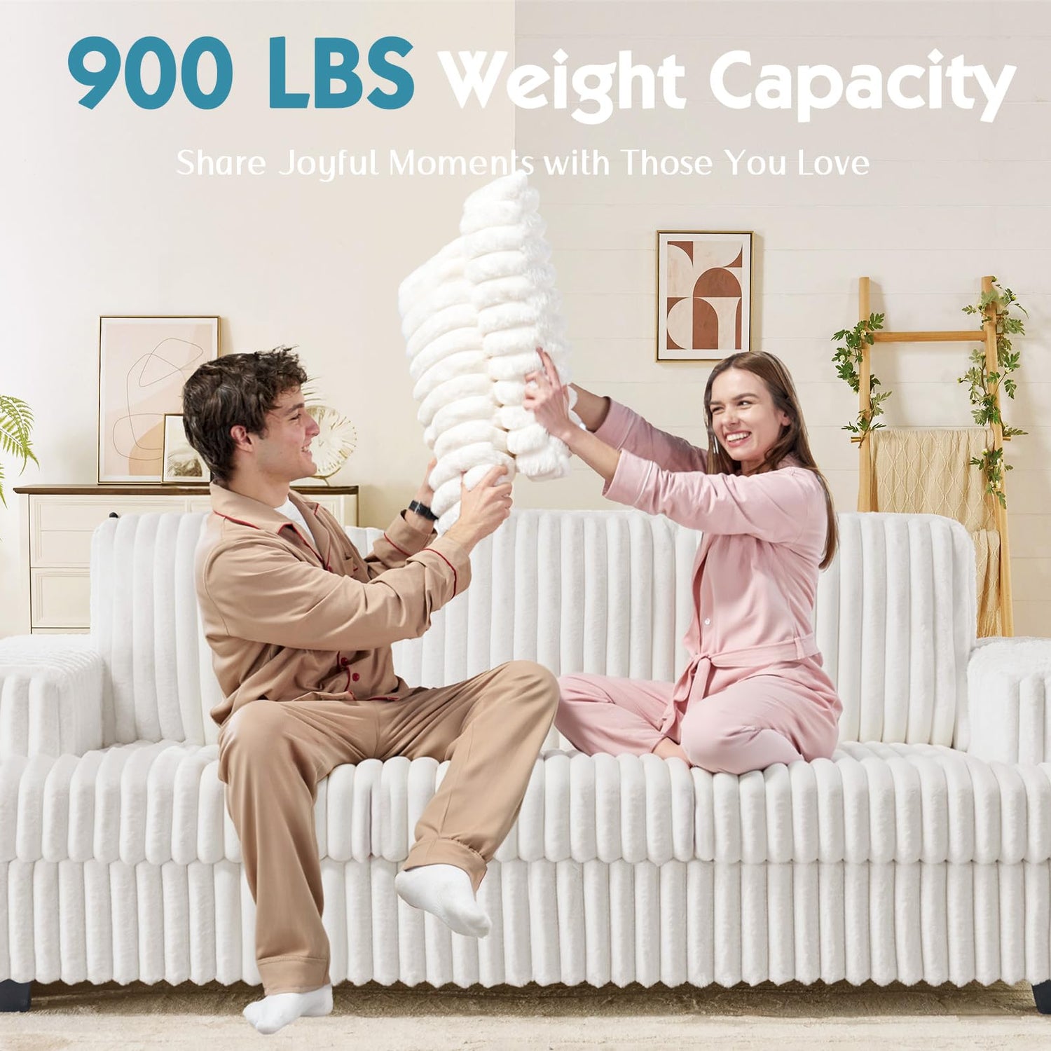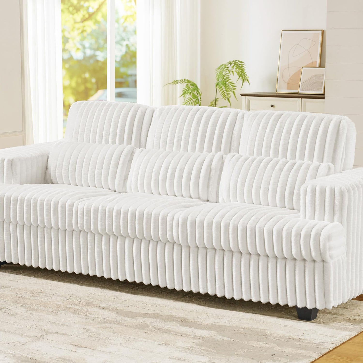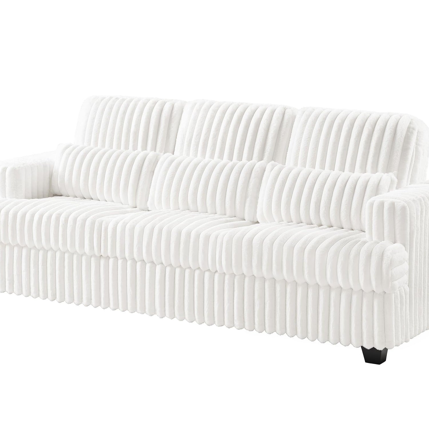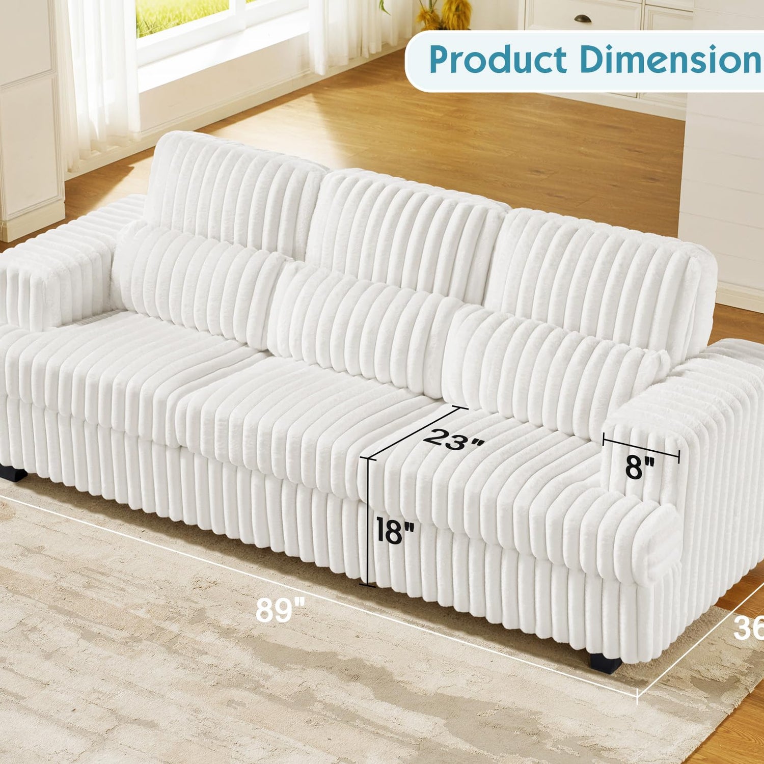VanAcc 89 Inch Sofa, Modern Couch with Deep Seats, Comfy Sofa with 3 Throw Pillows, Upholstered Couch for Living Room, White