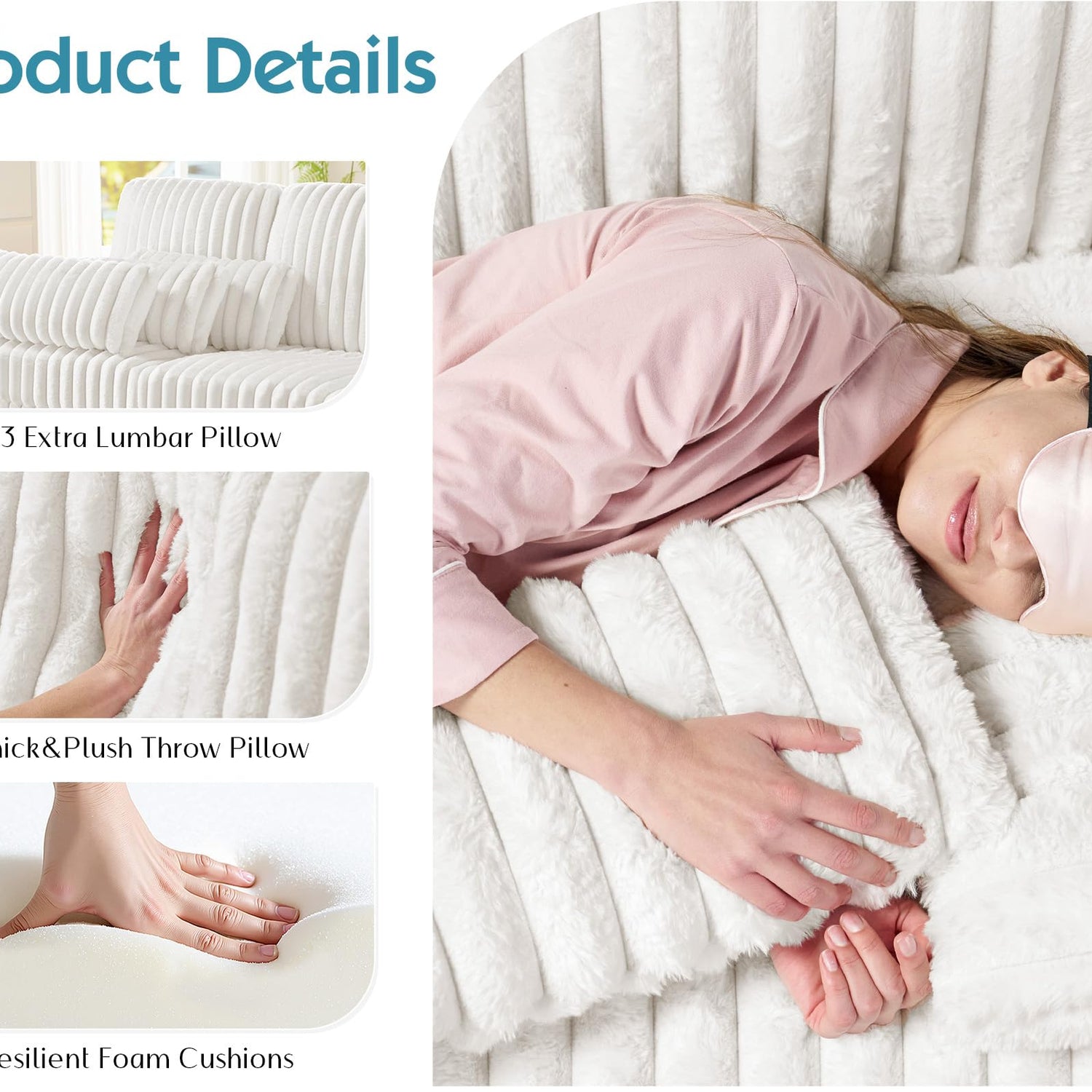 • Additional 3 Pillows: The fluffy sofa comes with 3 throw pillows for lumbar support, extra comfort, or decoration, enhancing both practicality and aesthetics for your comfortable couch in daily use.