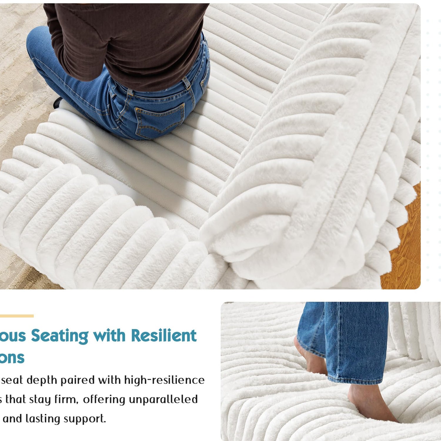 • Faux fur fabric: Soft and refined, the cream couch combines luxury and style. The plush sofa is easy to care for, meeting the demands of a luxurious lifestyle while ensuring convenience in use.