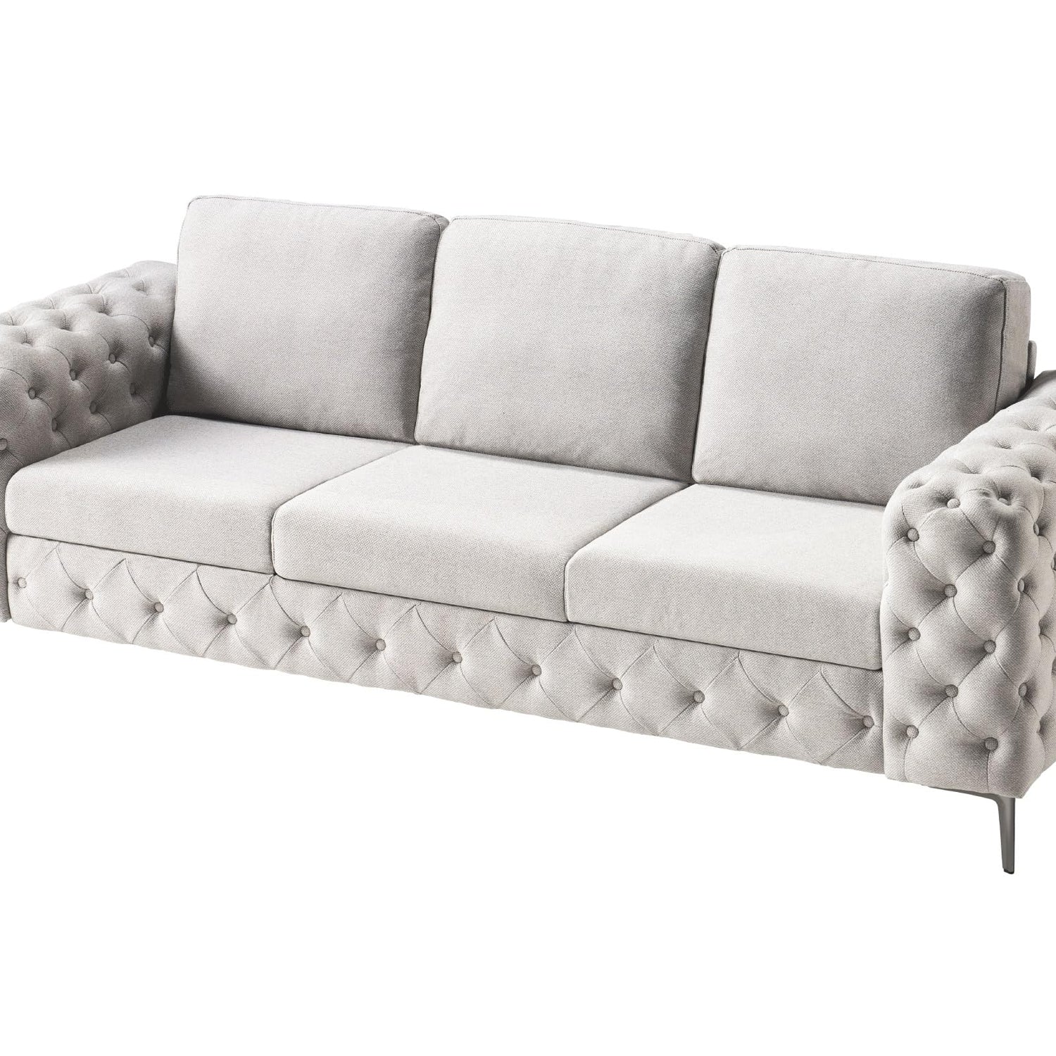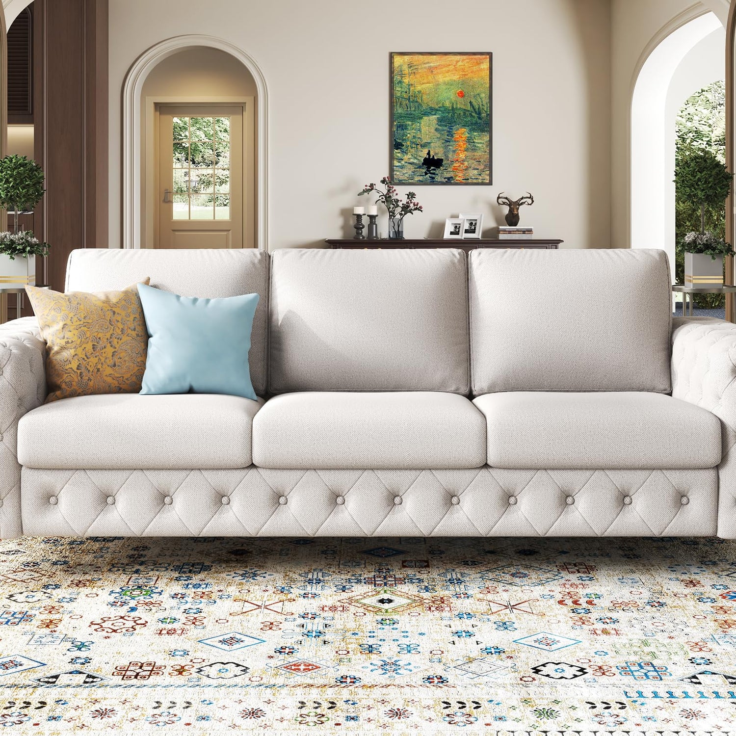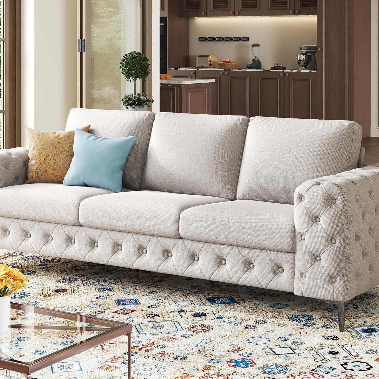 VanAcc Modern Sofa, 92 inch 3 Seater Sofa with Stylish Thick Armrest, Upholstered Button Tufted Couch for Living Room, Apartment, Linen Beige Oversized Couch