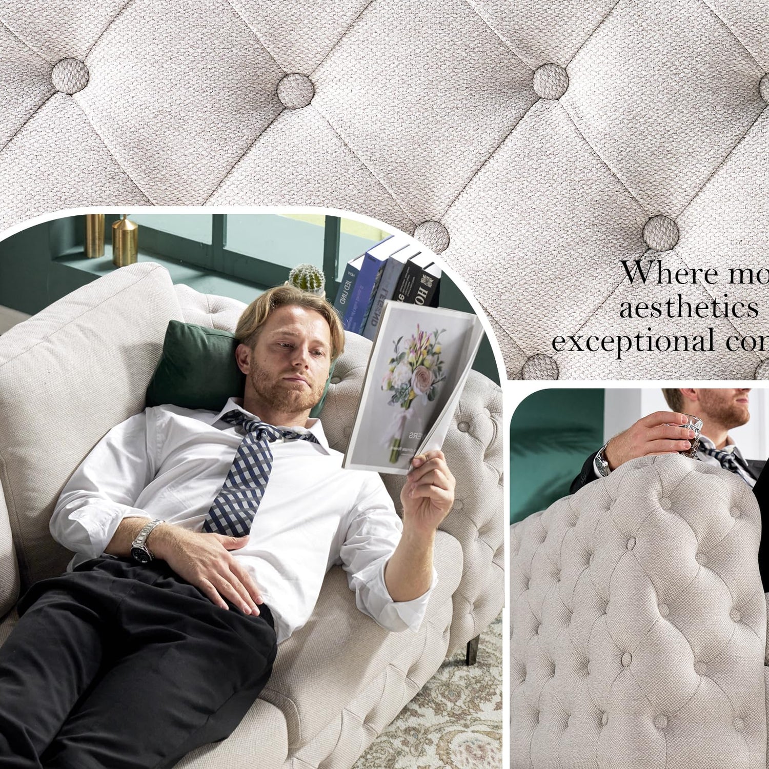 - Chic Tufted Craftsmanship: Classic handmade tufting on comfy sofa adds texture, securely fastening the fabric in place, preventing sagging and maintaining its shape for years. A timeless touch of luxury for any space.