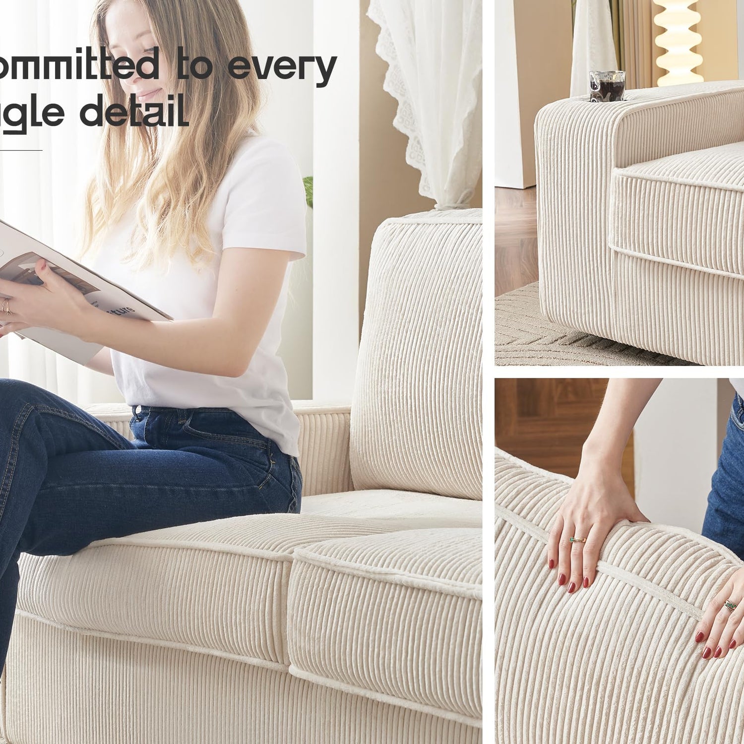 • Breathable Corduroy Fabric- Deep seat sofa is upholstered with corduroy fabric, offers a luxuriously soft and plush texture, inviting relaxation and comfort. Cushions and legs are stored inside armrests.