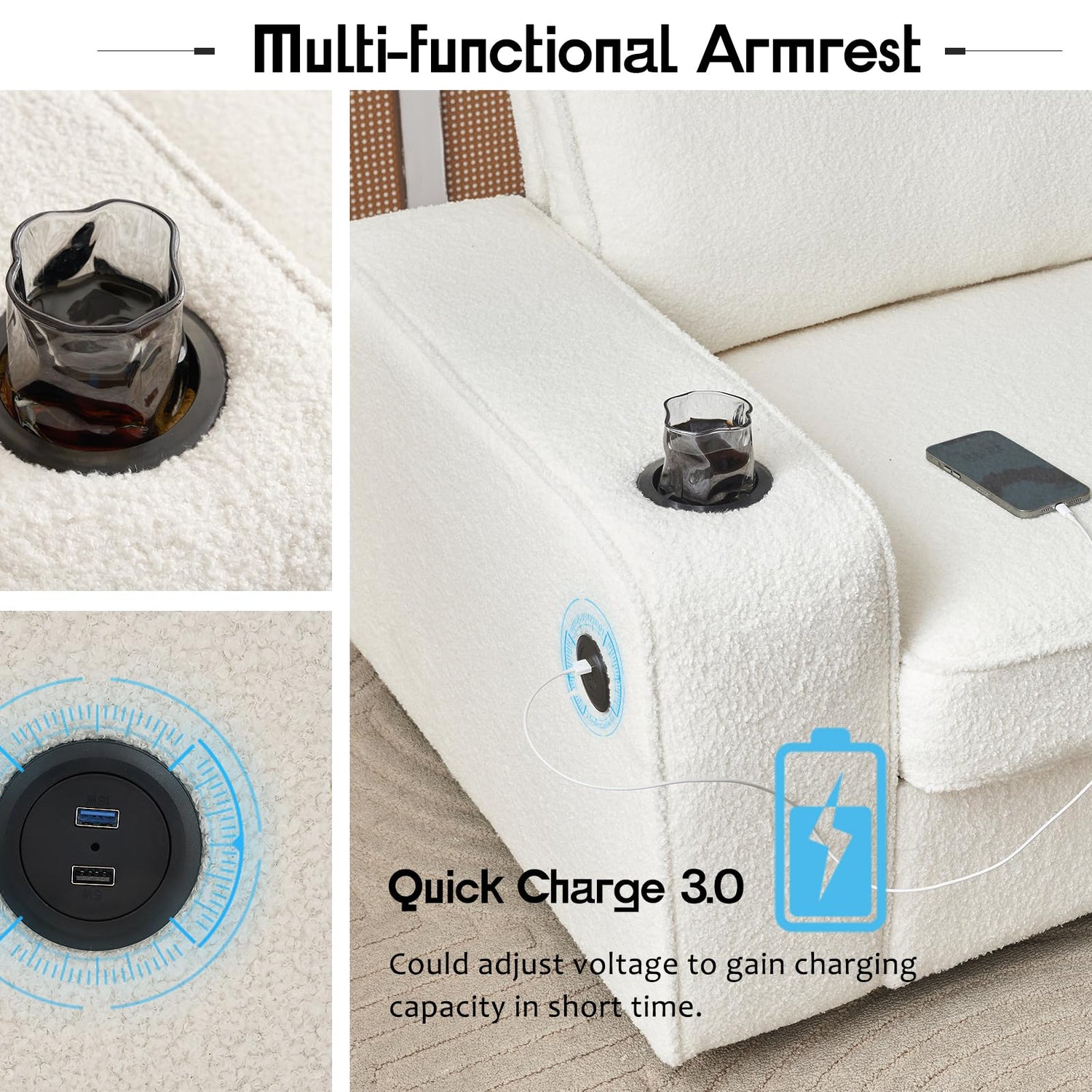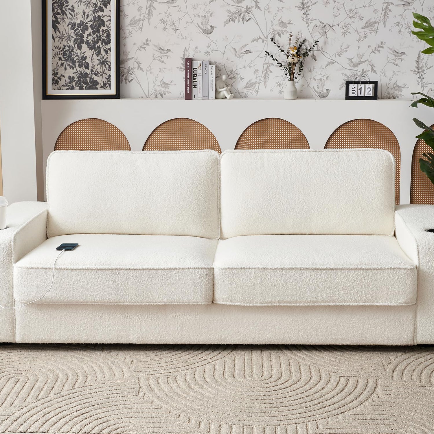 VanAcc Sofa, 89in Modern Sofa with USB Charging Ports & Cup Holders, Deep Seat Sofa Couch- Comfy Couch for Living Room (Offwhite Bouclé)