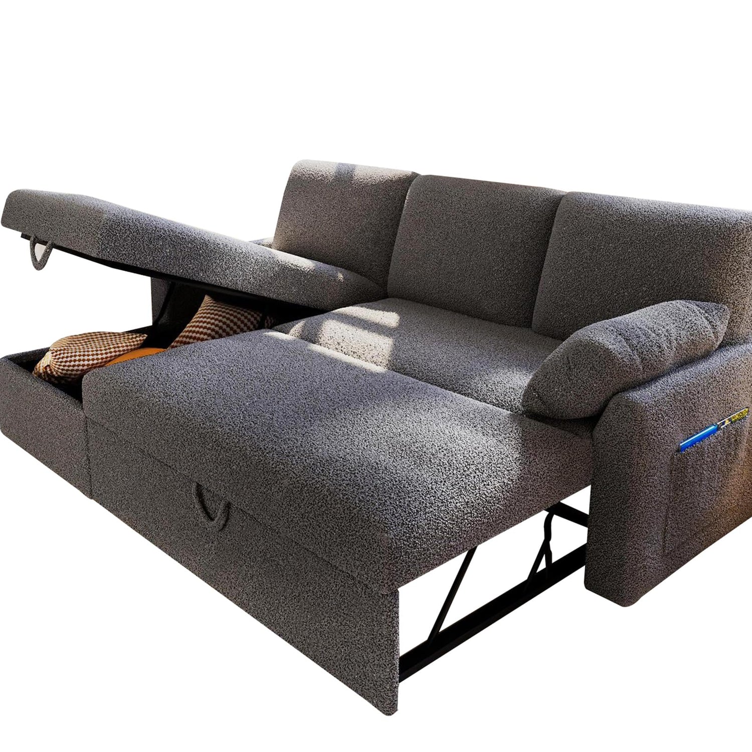 VanAcc Sofa Bed, Sleeper Sofa with Storage Chaise- 2 in 1 Pull Out Couch Living Room, Comfy Sleeper Couch, Grey Boucle