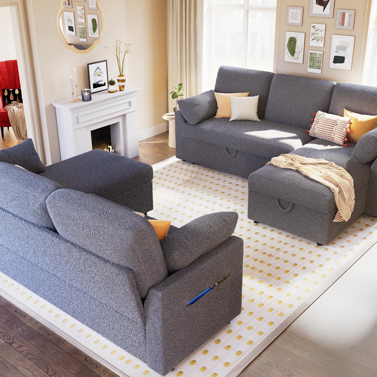 - Couch with Storage: The couch is equipped with ample storage space, you can store blankets, pillows, toys, and more, which maximize your living space and stay it tidy and organized.