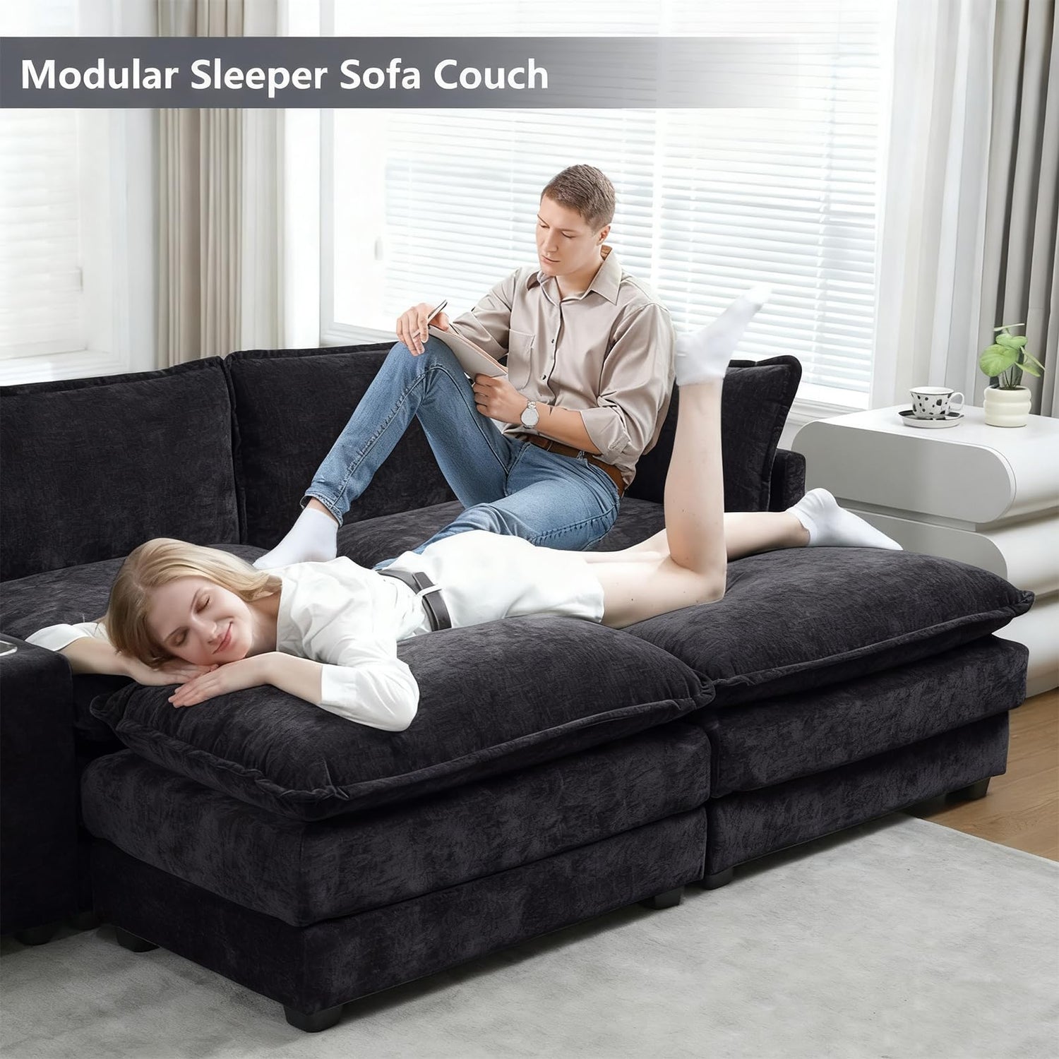 • Comfy Cloud Couch Sectional: Our oversized living room sofa sets is made of a delicate skin-friendly chenille fabric for a stylish look and a soft, breathable surface. Features cozy double-thick cushions of resilience foam for further comfort. Comes with 4 back pillows, 2 armrest pillows and 2 removable ottomans, so whether you're sitting back and relaxing or laying down for a nap, this u shape sectional couch transforms rest into a cloud-like experience