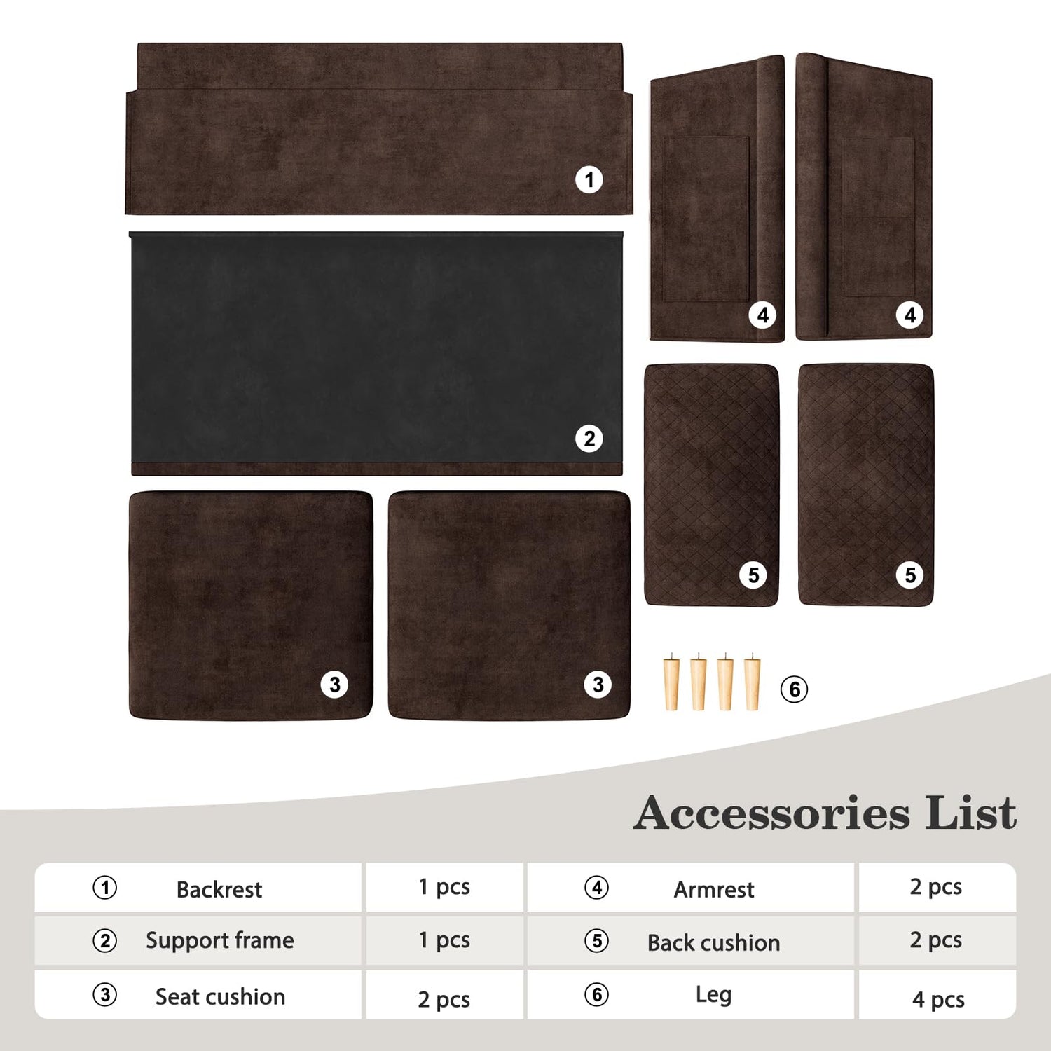 - No-tool installation: Designed for easy setup without extra tools. Find all necessary accessories inside the seat frame by unzipping the black cloth at the bottom. Follow the instructions to assemble the sofa in 15-20 minutes. If any accessories are missing or other issues, contact us promptly. Allow 2-3 days for back and seat cushions to fully expand.