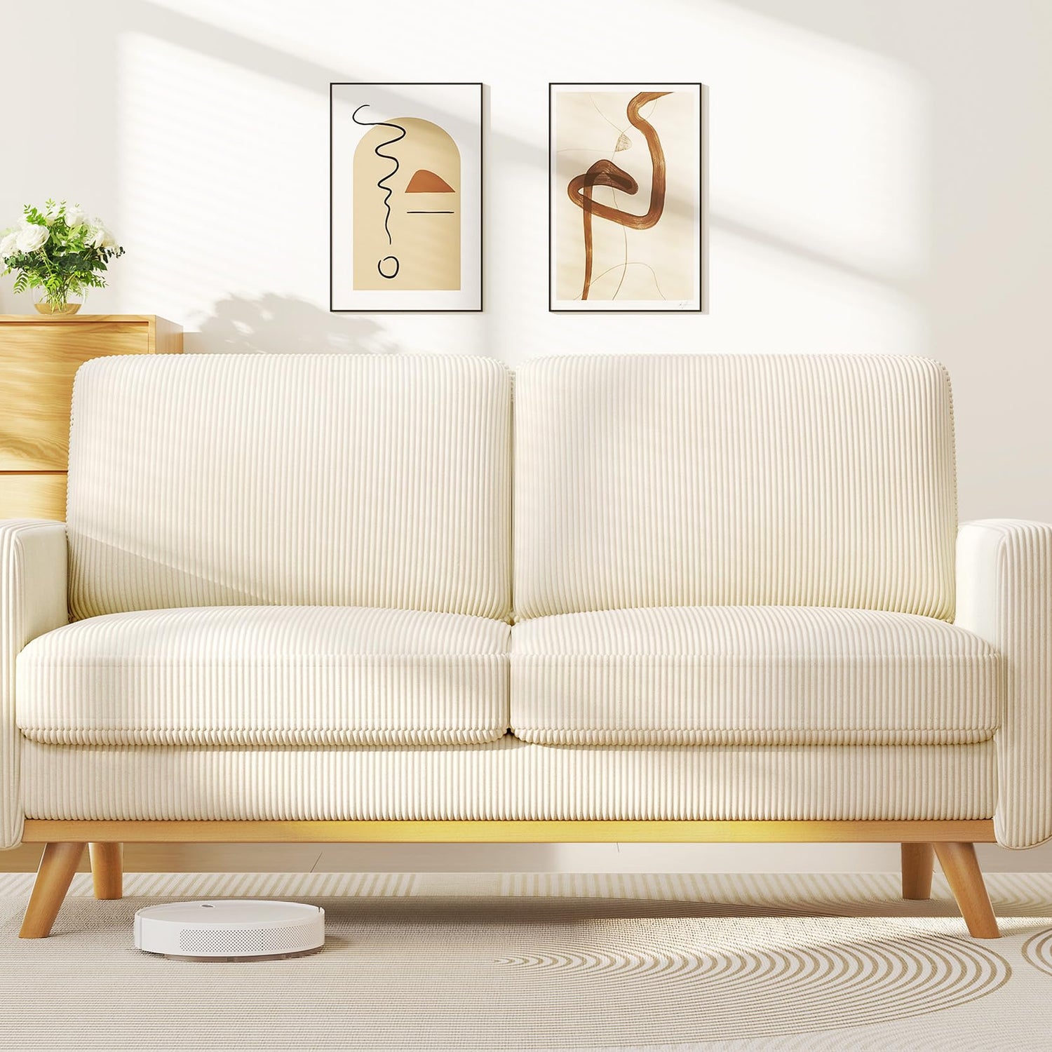 Vesgantti 68" Loveseat Sofa Beige, Comfy Corduroy Couch with Spring Cushion, Modern Sofa with Deep Seat, for Bedroom & Living Room