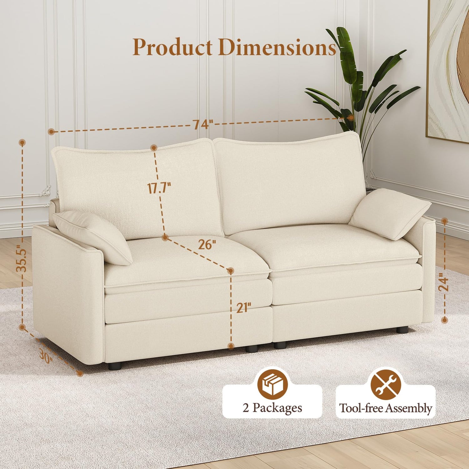 Vesgantti 74" Loveseat Sofa for Living Room, Comfy Cloud Couch Deep Seat Chenille Modern 2 Seater Small Sofa with Armrest Pillow, Easy Assembly for Small Spaces, Beige
