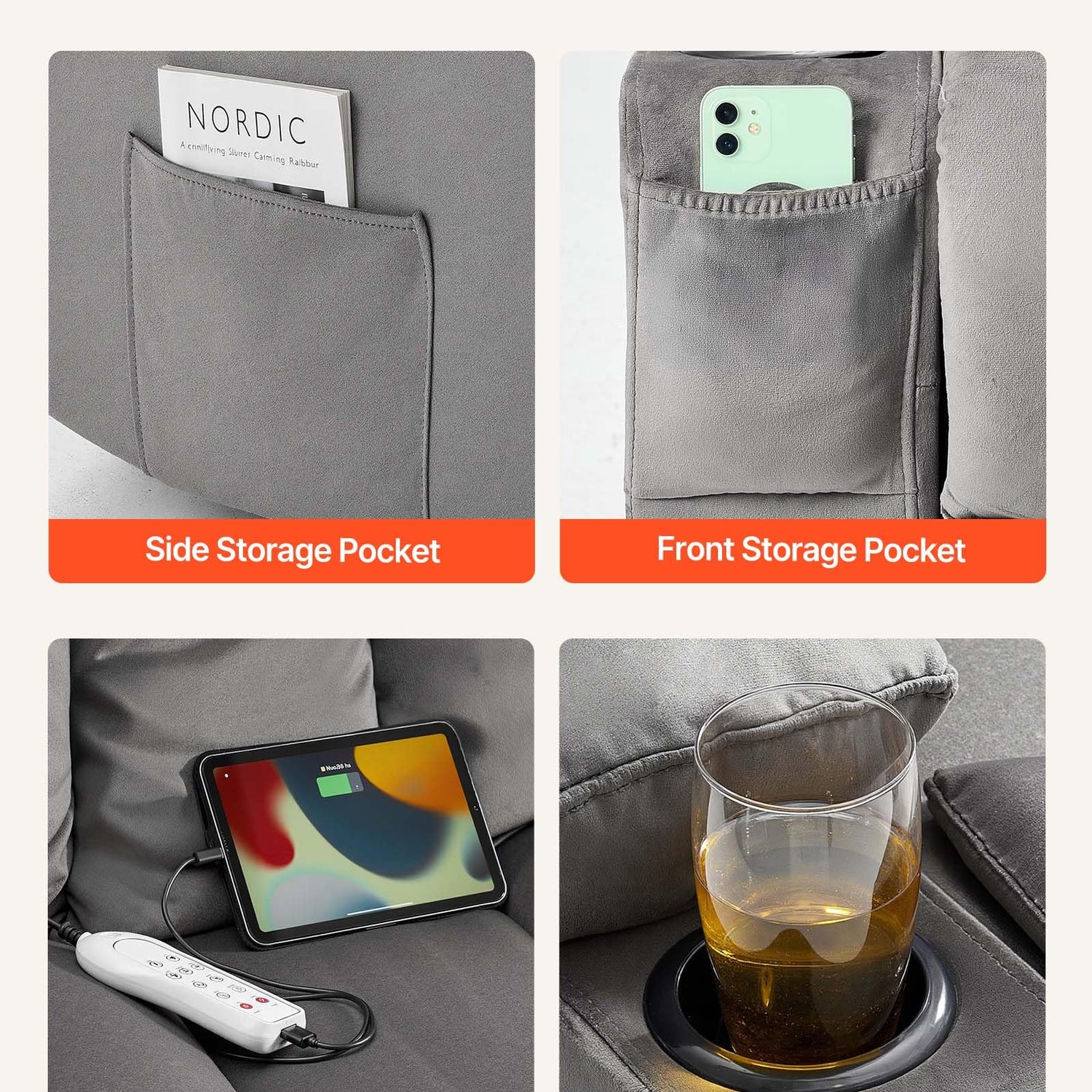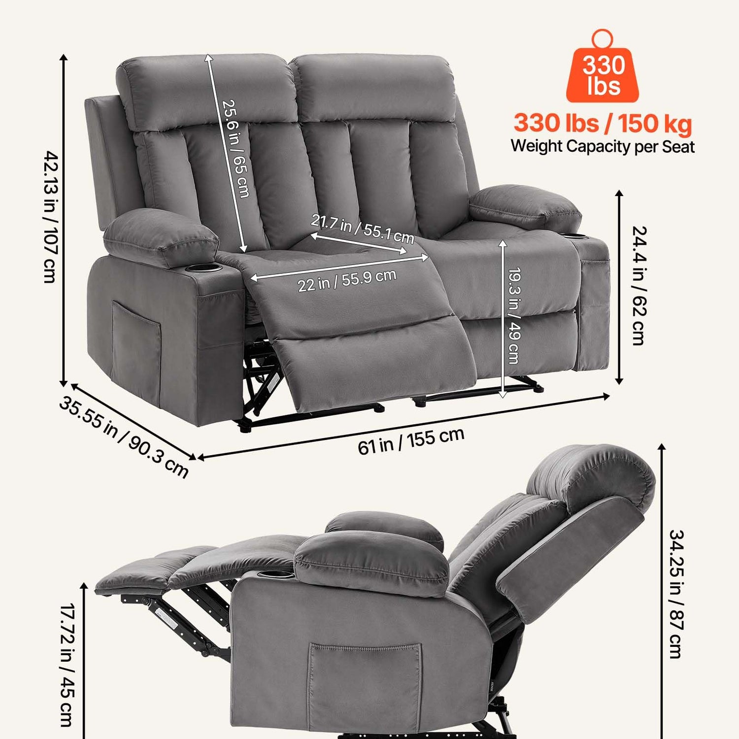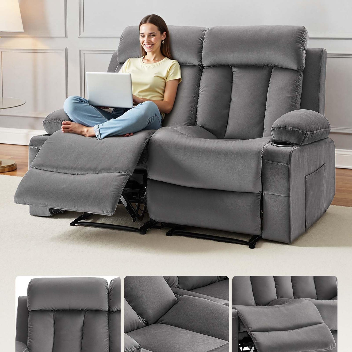 - Thoughtful Features: This recliner loveseat includes USB and Type-C charging ports, side/front pockets for storage, and two cup holders, making it ideal for relaxation and convenience