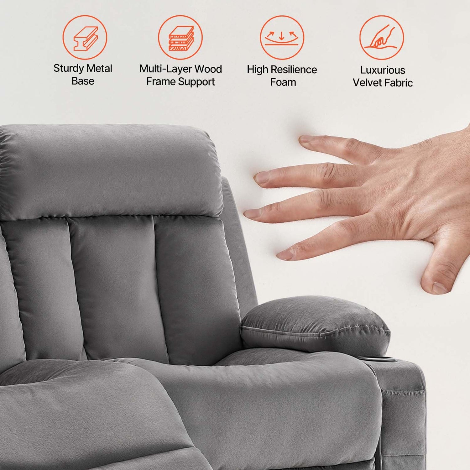 - Premium Materials: With a metal frame and multi-layered wood, each seat supports up to 330 lbs / 150 kg. High-density foam provides lasting comfort and support for your head, back, and legs, while the velvet fabric is soft and easy to clean