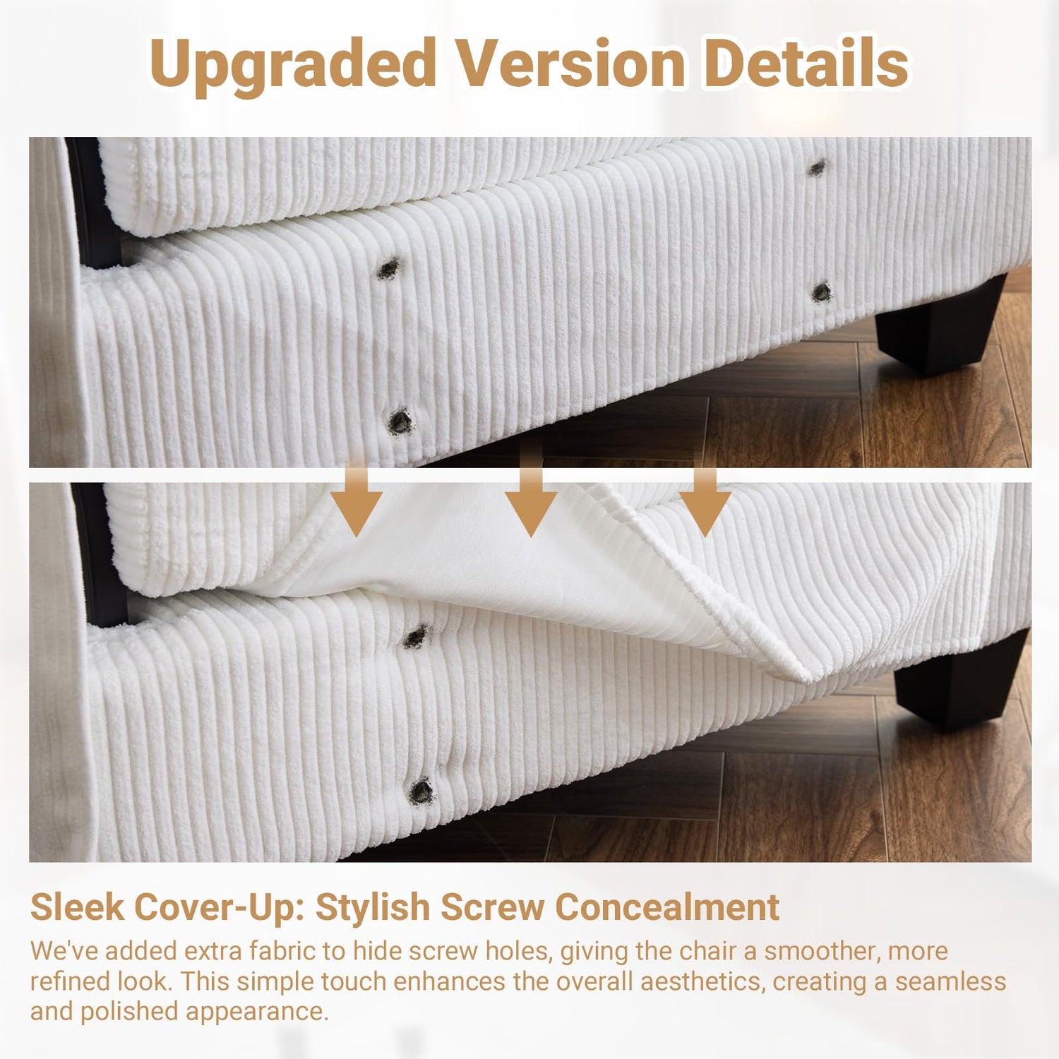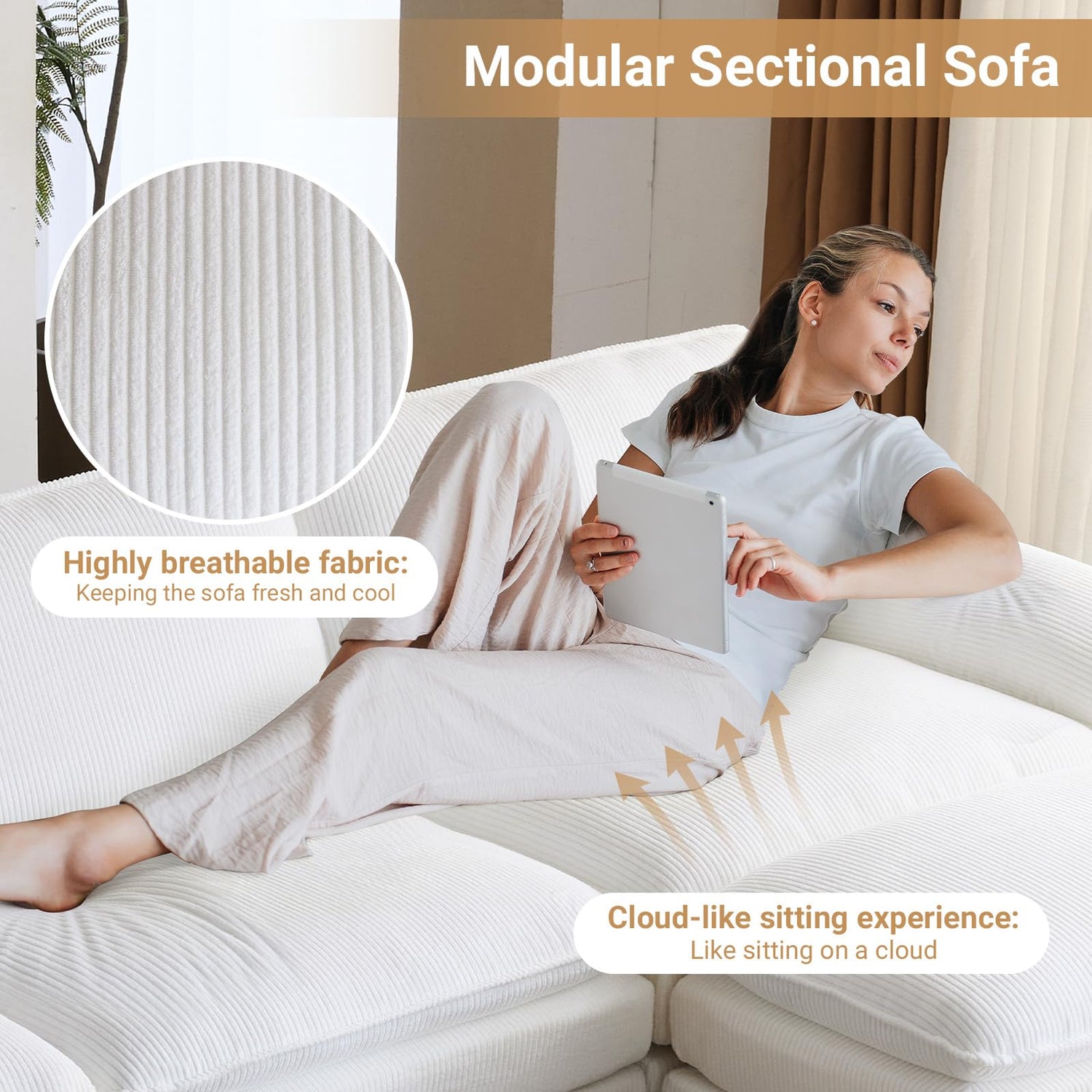 VINGLI 86" Cloud Corduroy Sectional Sofa, Comfy L-Shaped Extra Deep Seat Sofa Couch for Living Room,Modern 2-Seat Convertible Loveseat Sofa with Ottoman for Small Space(White)