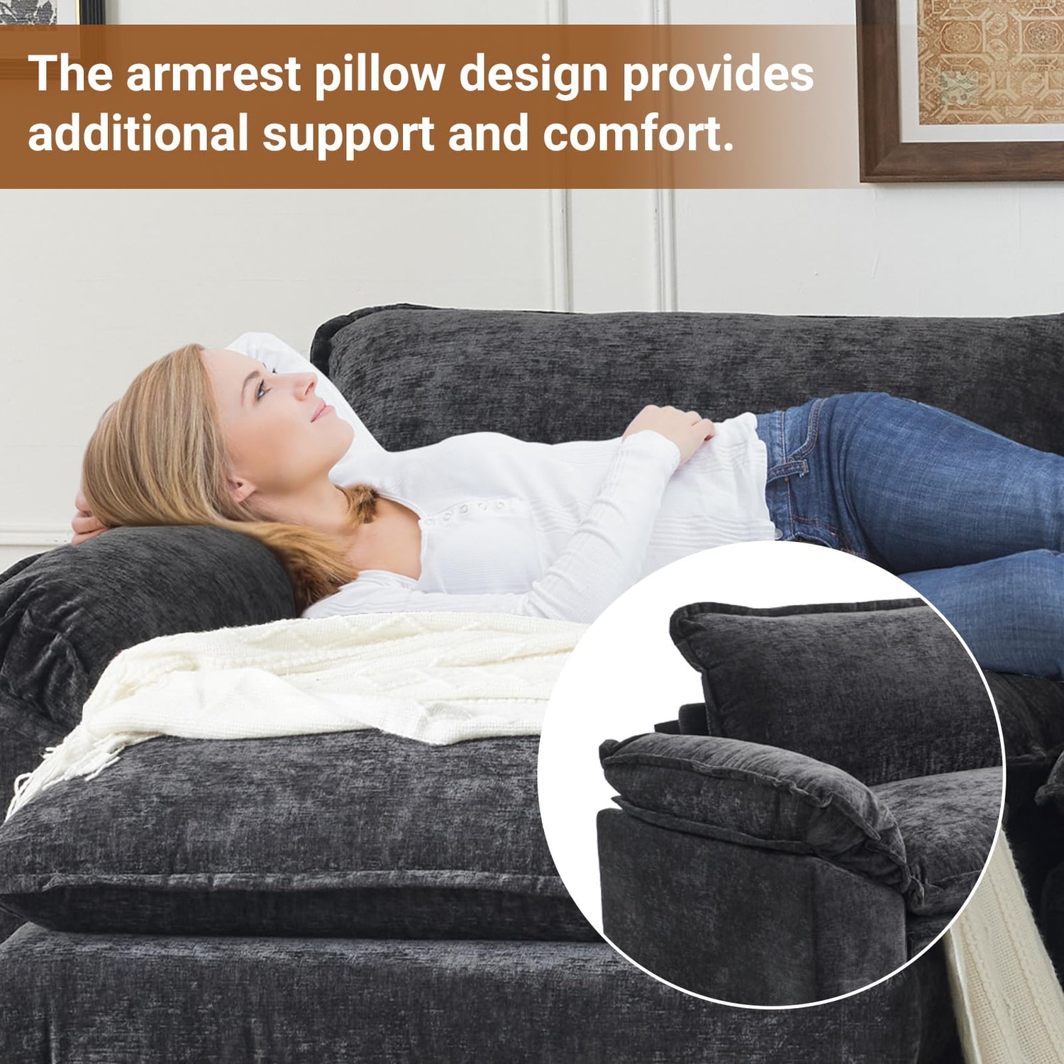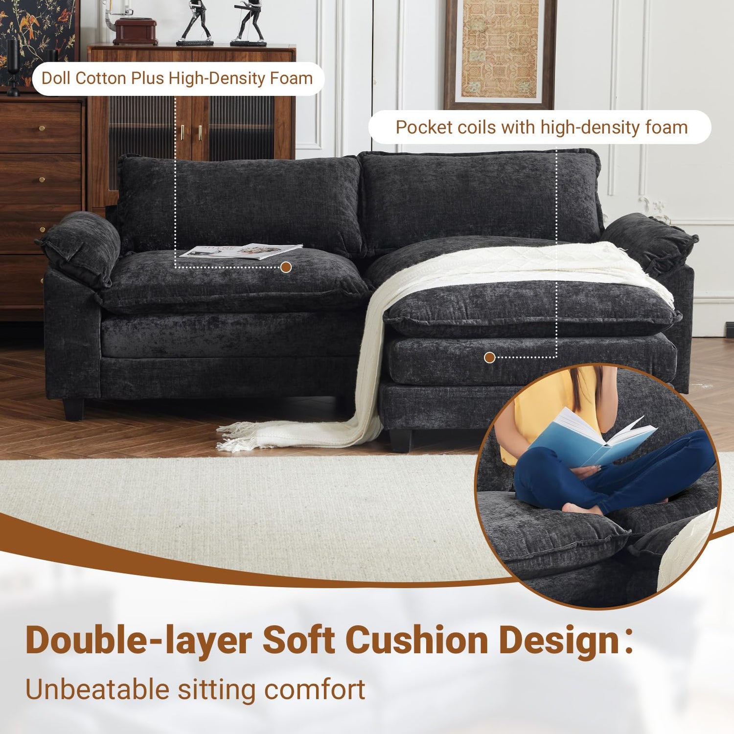 VINGLI 87" Convertible Sectional Sofa,L-Shape Deep Seat Sofa Couch for Living Room,Modern Chenille 2 Seat Loveseat Sofa with Ottoman for Small Space(Black, 87")