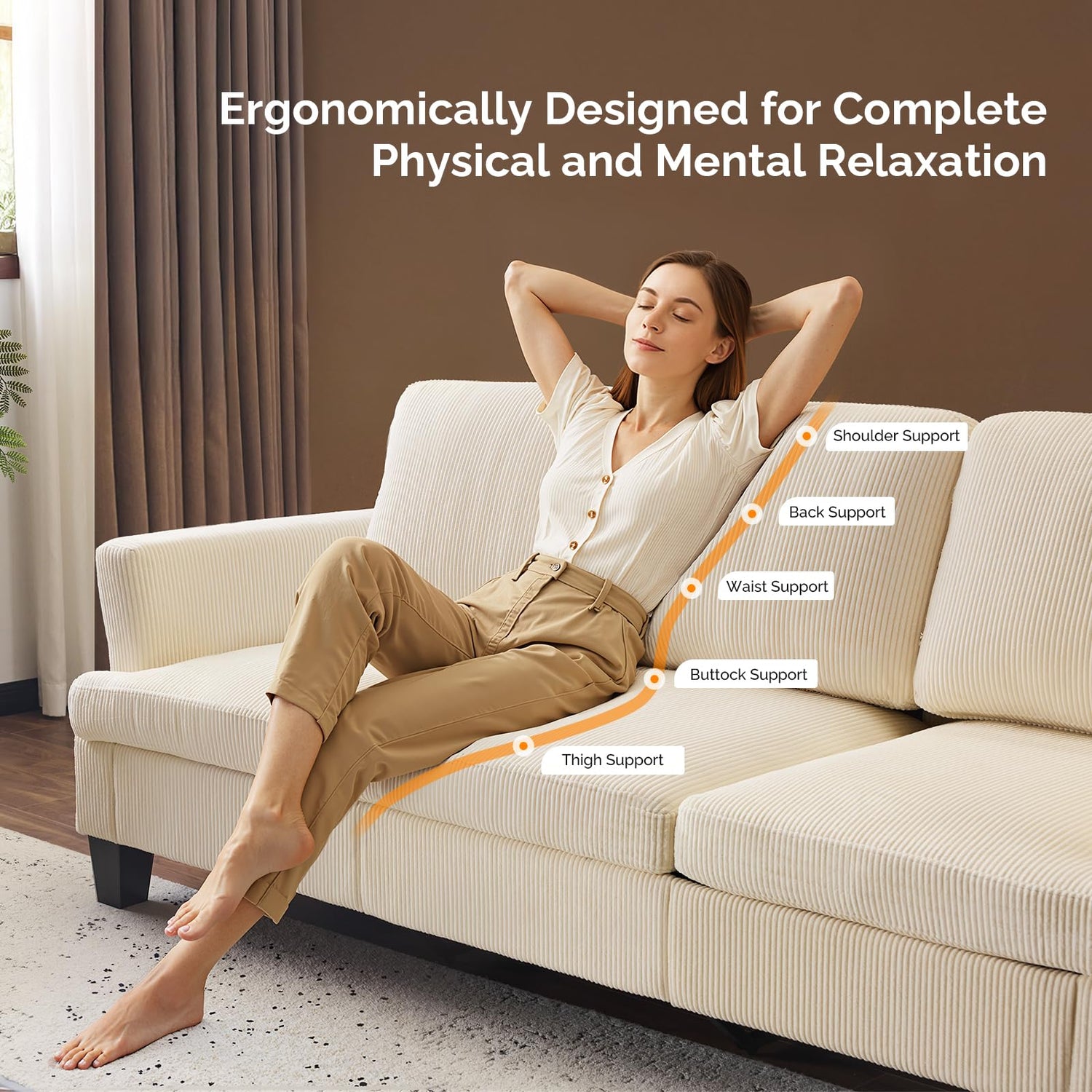 VINGLI Beige 83" Sofa Couches for Living Room, Corduroy Modern Comfy 3 Seater Couch 25.6" Deep Seat Upholstery Cozy Sofas for Small Space, Bedroom, Apartment, Home Office