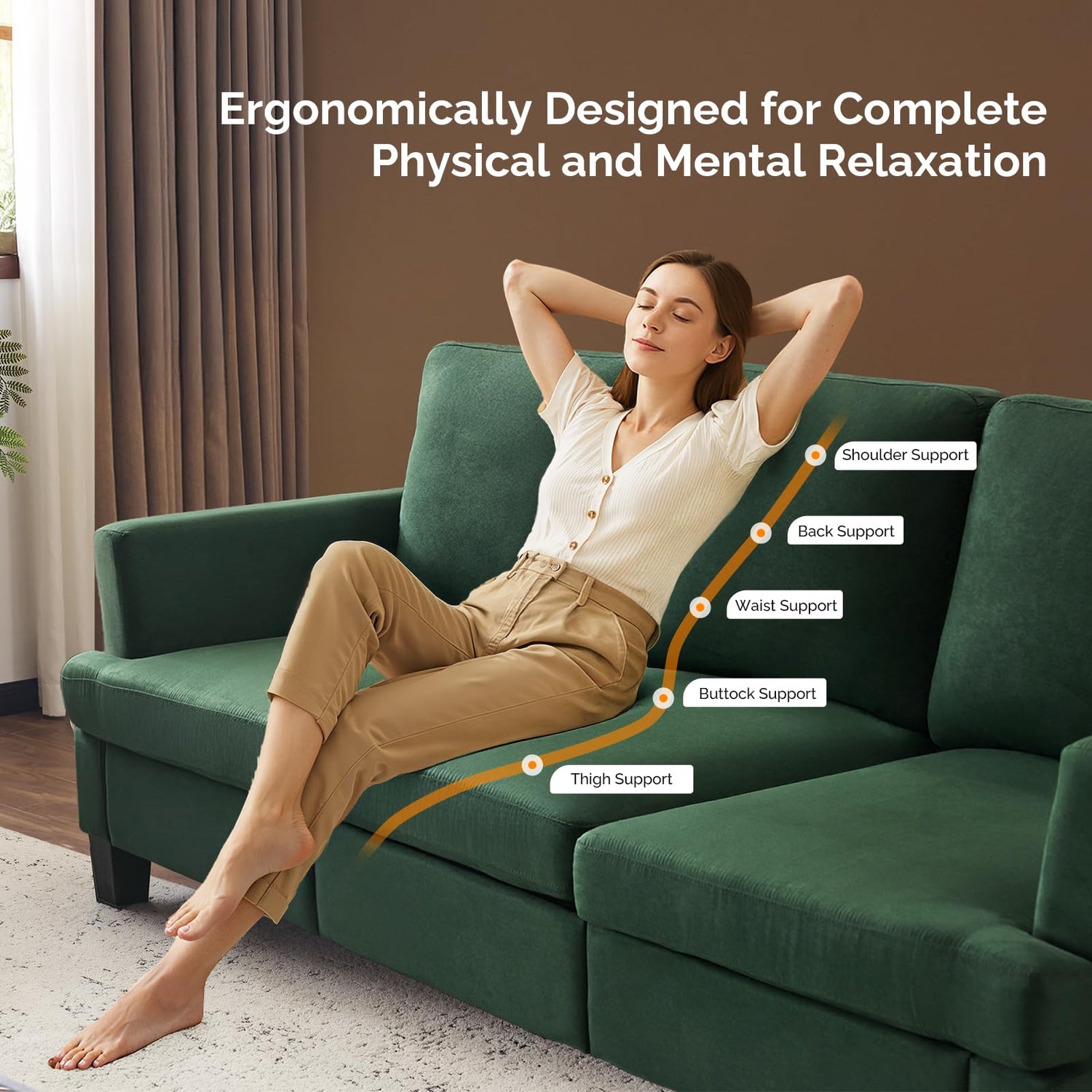 VINGLI Green 83" Sofa Couches for Living Room, Modern Comfy 3 Seater Couch 25.6" Deep Seat Upholstery Cozy Sofas for Small Space, Bedroom, Apartment, Home Office