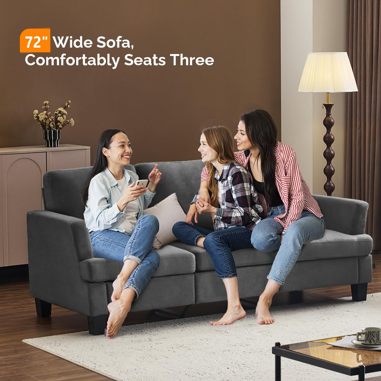 - Spacious Seating for Three Adults--With a 72" seat width, this couch comfortably seats three adults without feeling cramped. Its spacious design allows for a relaxed sitting experience, giving each person enough room to move freely. Whether you're hosting guests or enjoying a quiet evening with family, this couch ensures everyone has their own space to sit comfortably and enjoy the surroundings.