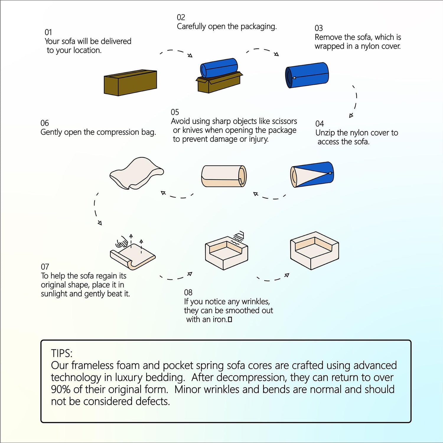 • 【No Assembly Required】Enjoy the ease and convenience of a modular sofa that requires no assembly. Simply unbox your cloud couch, fluff the cushions, and let it naturally take shape within 72 hours. This hassle-free sectional sofa provides a seamless and stylish addition to your home, without the stress of complicated setups.