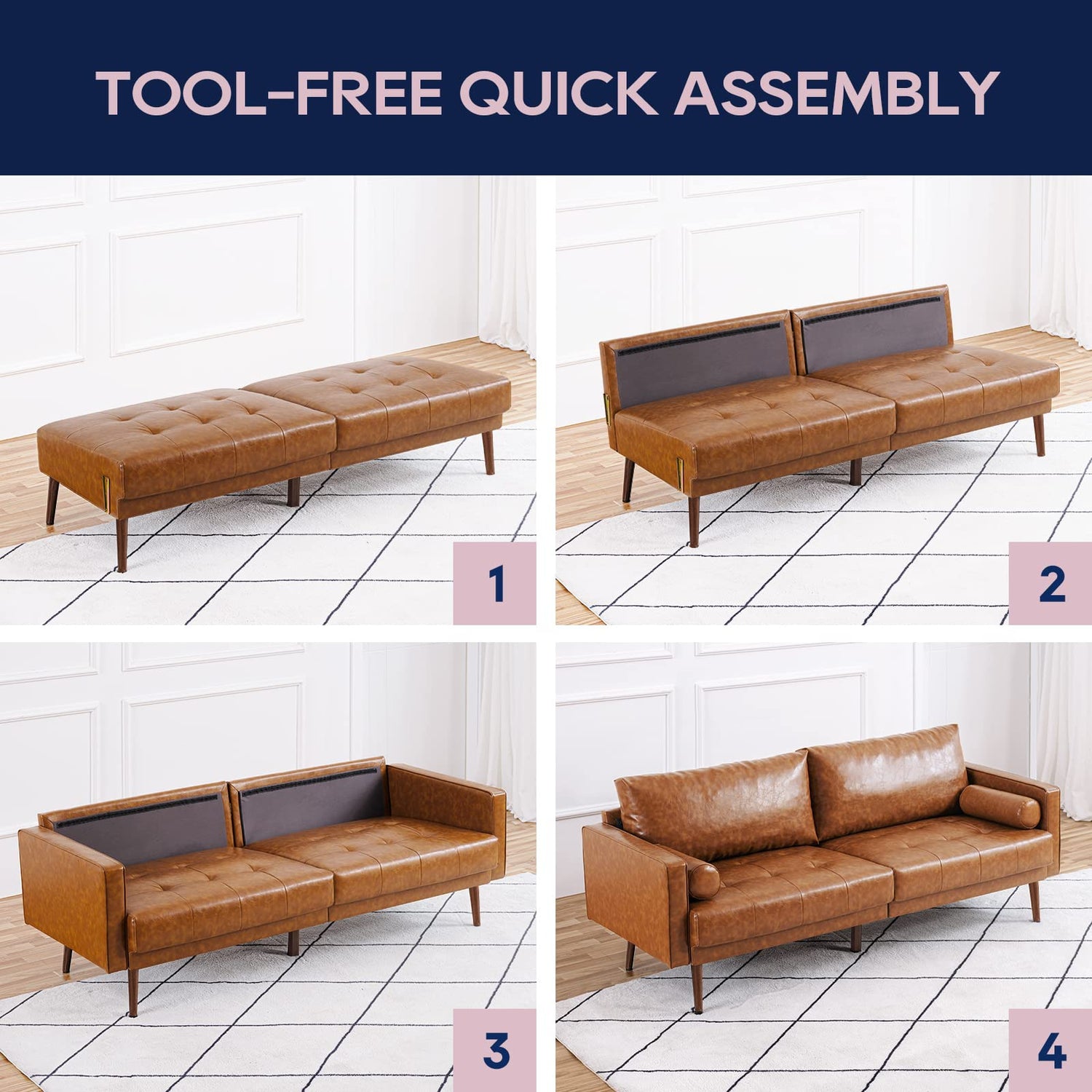 • EASY ASSEMBLY: Two Bolster Pillows included. These sofas only need to install the legs and the metal buckle that can enjoy timeless comfortable. The back cushion use velcro attaches to the frame to ensure the cushions always stay in place.