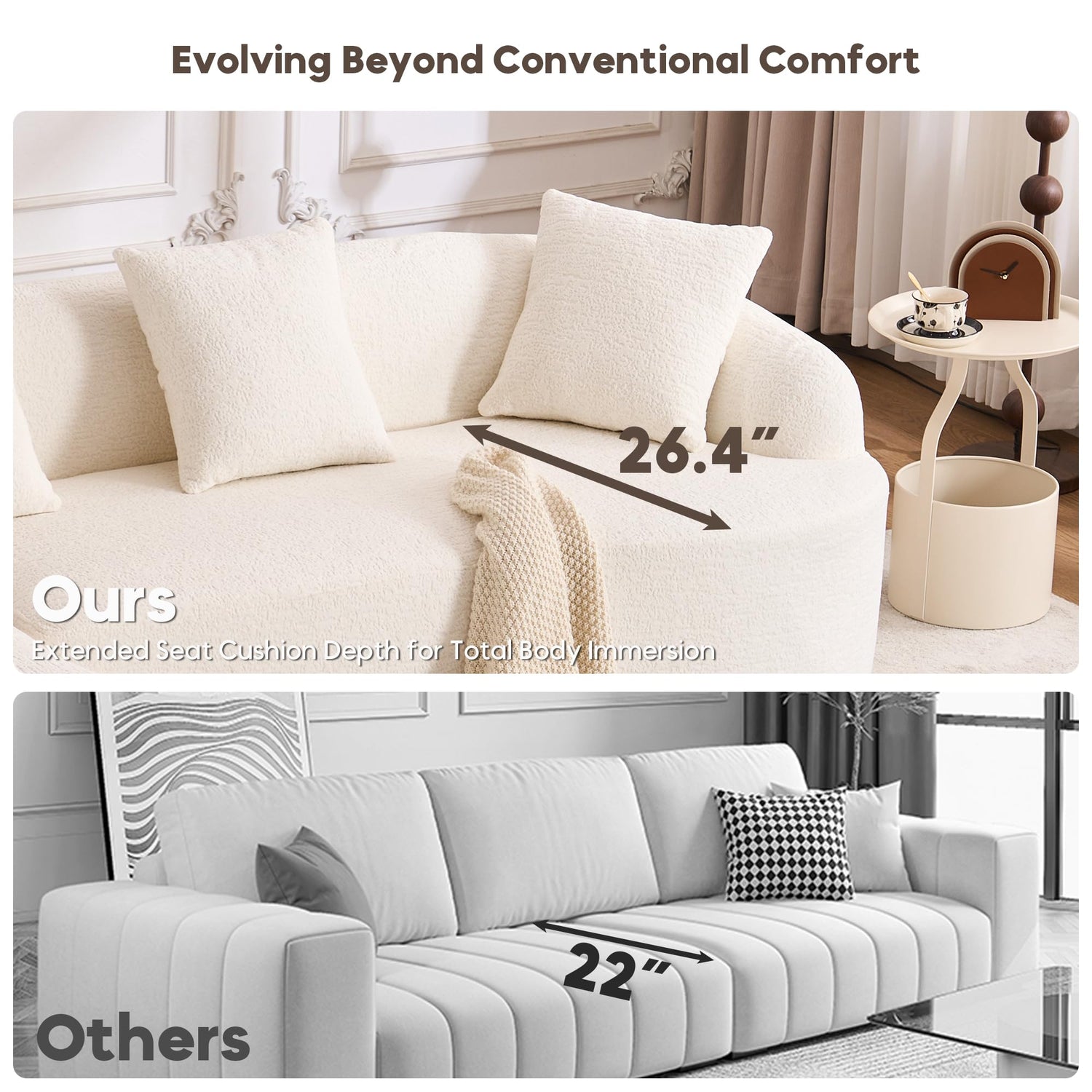 VYNELITO Oversized Sectional Sofa with Chaise for Living Room, 99" Modern Luxury Chenille 4-Seater Sofa Extra Wide Seat L-Shape Curved Cloud Couch with 4 Throw Pillows, White