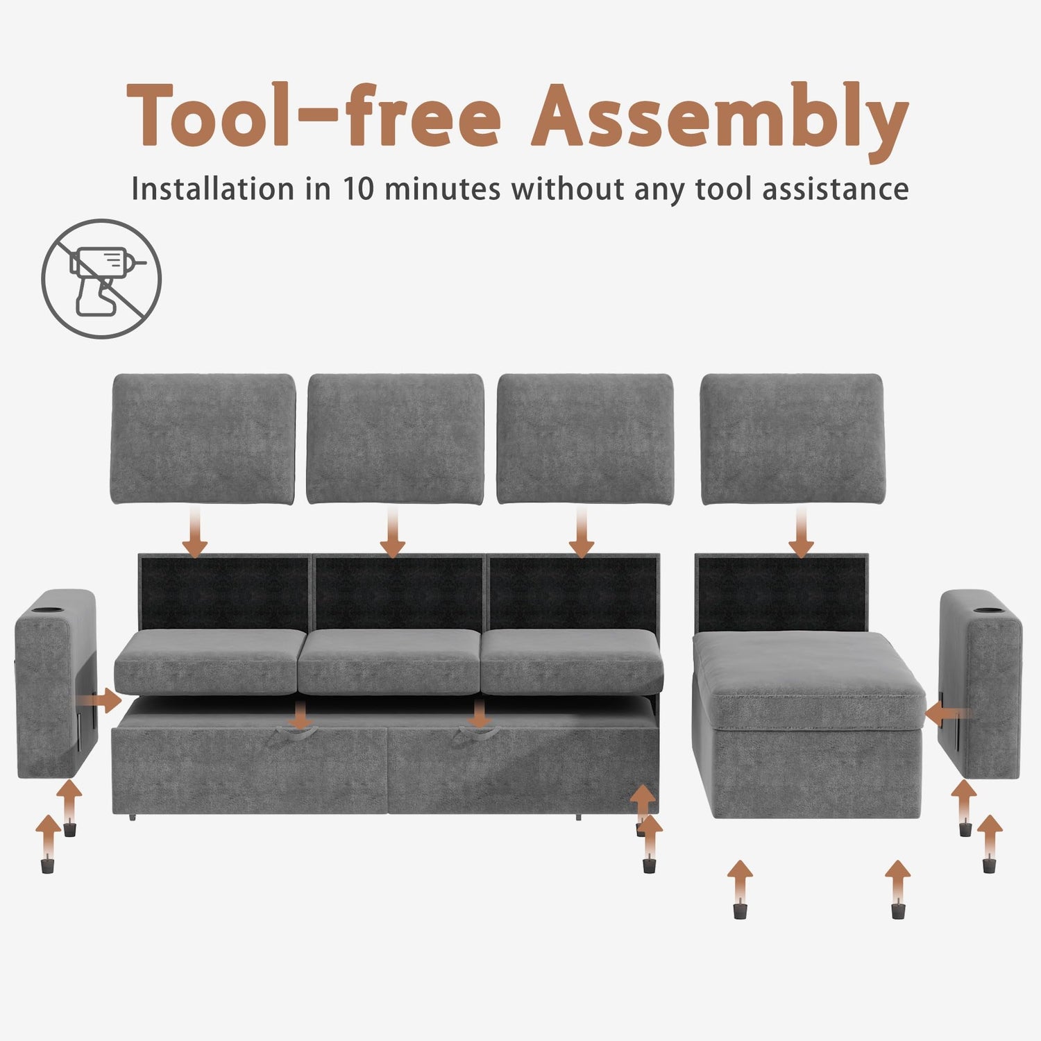 - Hidden Storage Space: Designed with storage compartments underneath the seating area, the couch's built-in storage compartments are easy to access and spacious, perfect for storing blankets, pillows, or other items to help you save space while staying comfortable.
