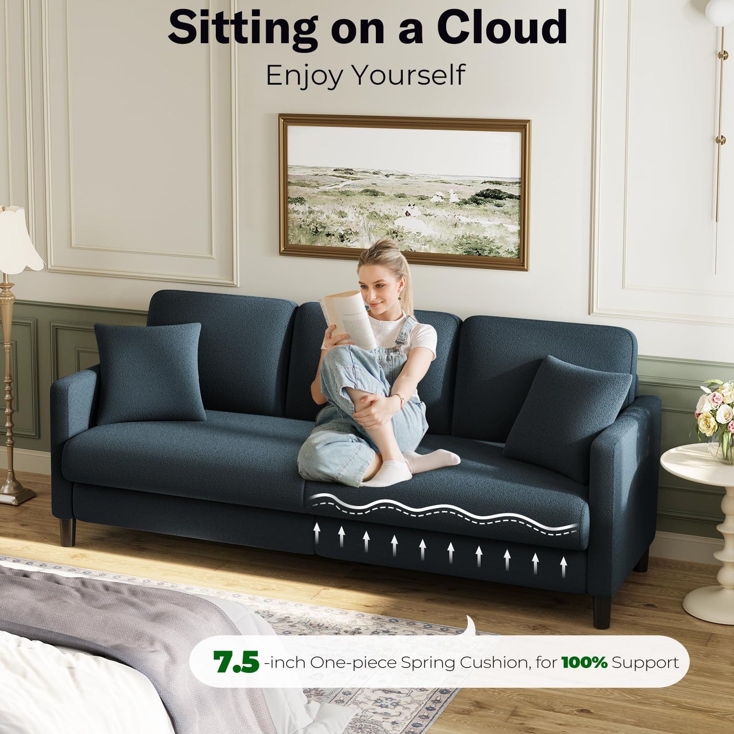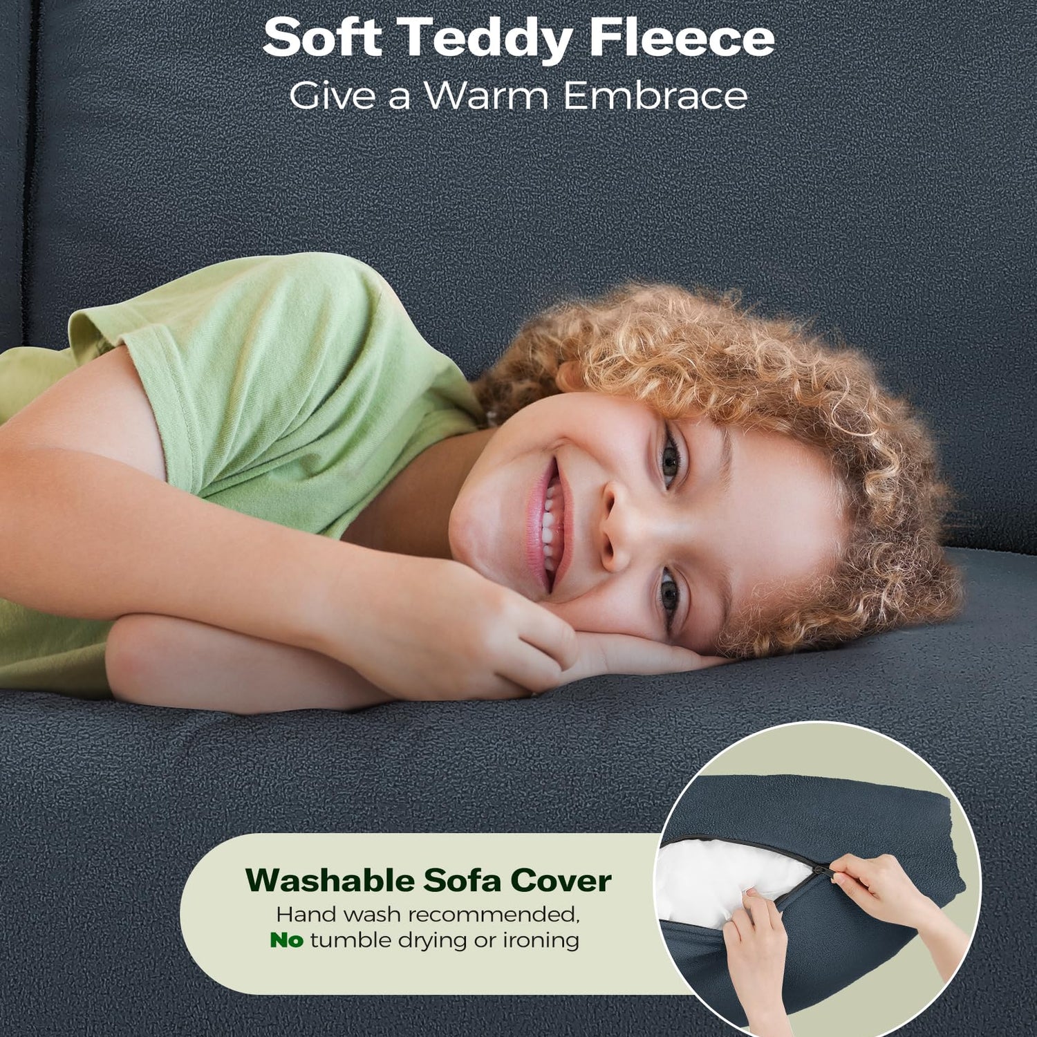 - 【WRAPPED IN BLISS WITH 2 PILLOWS】Our Sofas for Living Room are made of soft teddy fabric, providing warmth and ultimate comfort. The material of 3 seater couch feels soft is also highly resilient and wear-resistant, making it able to withstand daily use. Immerse yourself in unparalleled comfort and security as you snuggle up to or embrace 2 fluffy pillows. Whether it's the cold of winter or the heat of summer, these small couch will bring you comfort, like a warm hug.