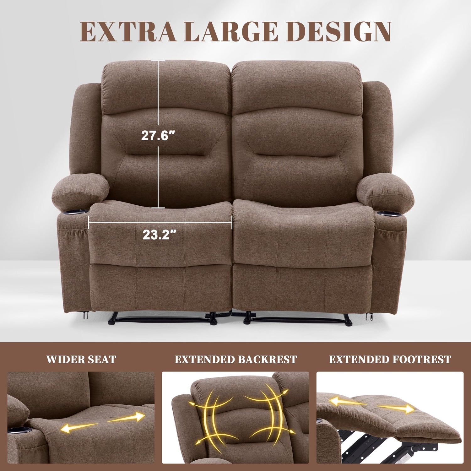 Weture Oversized Recliner Loveseat with Heat and Massage, Wall-Hugger Reclining Sofa with Cup Holders and USB Port, Big Large 2-Seater Double RV Recliner Loveseat for Living Room (Fabric, Brown)