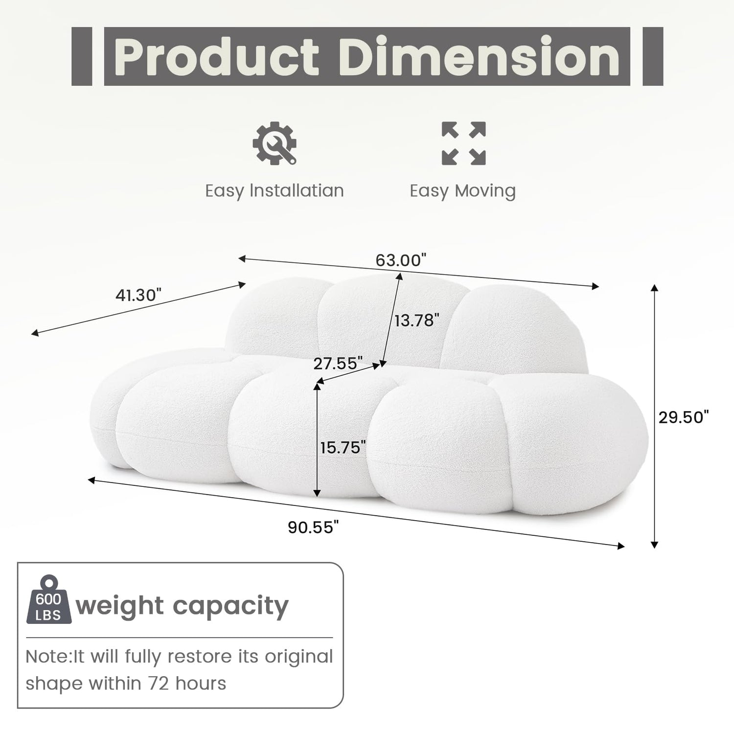 - 【Premium Materials】This Large Sofa Couch with upholstered in cozy Sherpa fabric, which isplush, skin-friendly, and warm to the touch, add the designed with Cloud Shape,It can bring you beautiful visually and safety from the compressed sofa