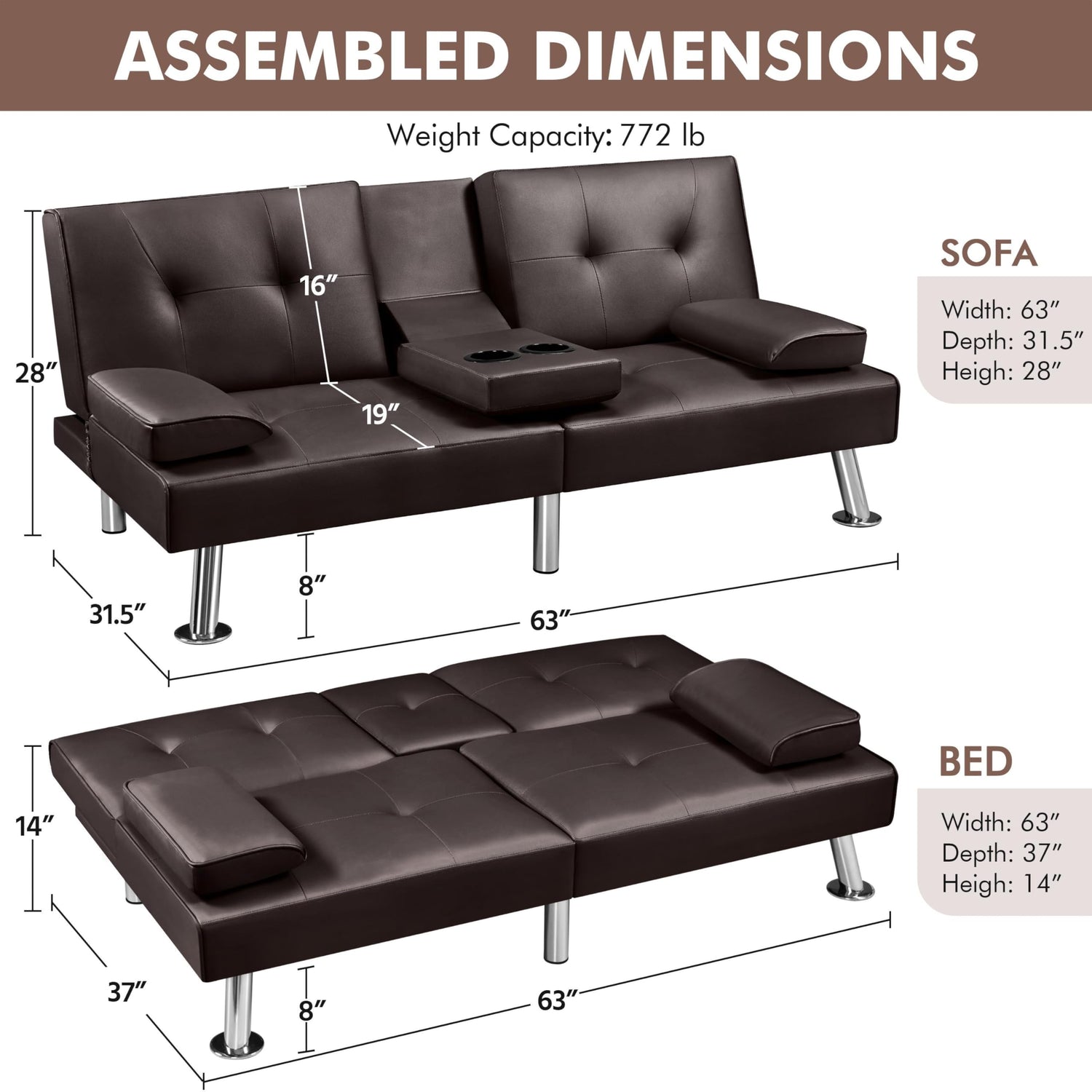 - BUILT FOR COMFORT & DURABILITY: Supported by Chrome-plated steel legs and an engineered wood frame, this convertible futon bed boasts a high capacity of up to 772 lb. Resilient foam cushions are upholstered in skin-friendly faux leather, offering extra comfort and easy cleaning.