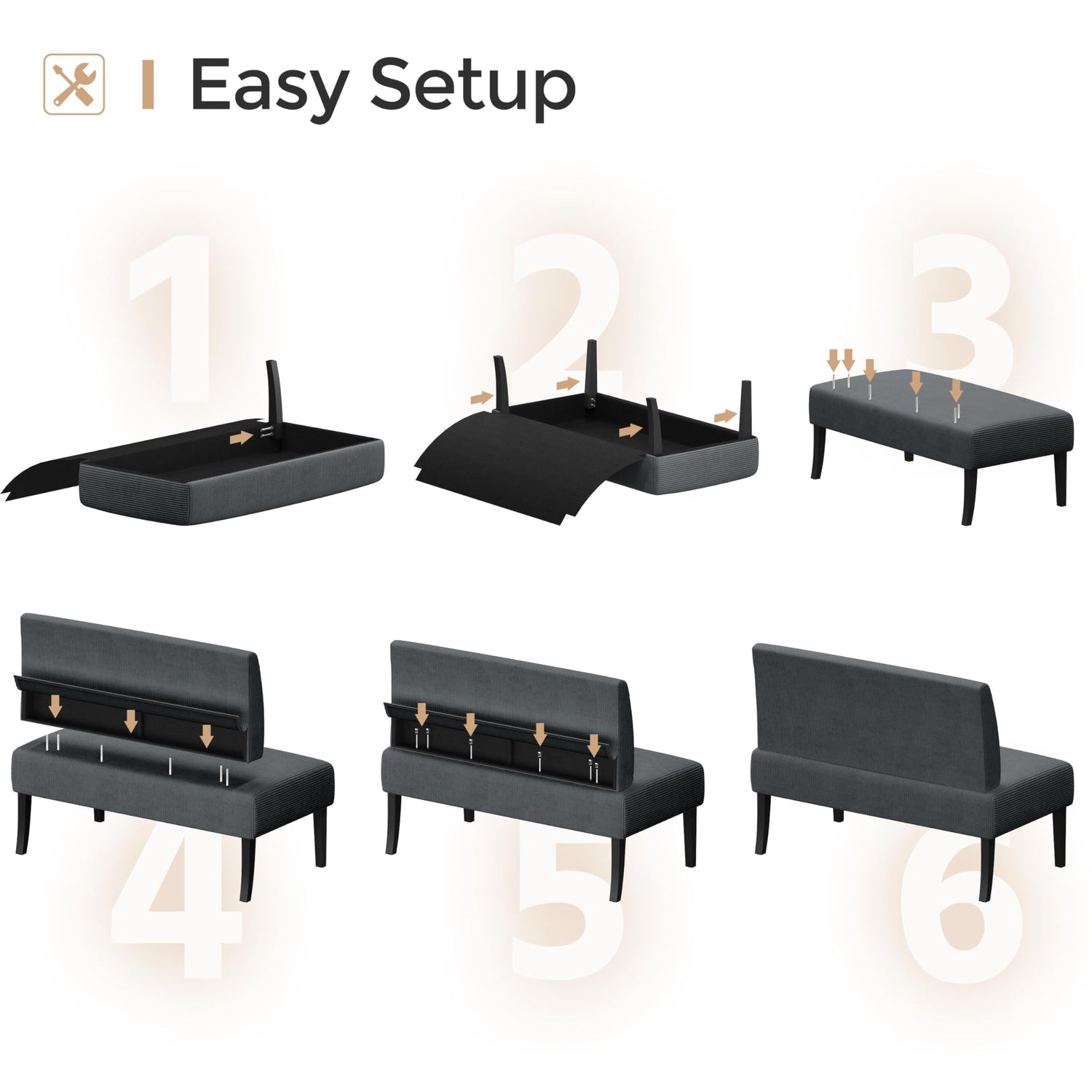 • Easy Two-step Assembly: Setting up this armless settee is a breeze—simply use screws to fix the backrest and the four legs on the base, and you’ll be enjoying your mini couch in no time