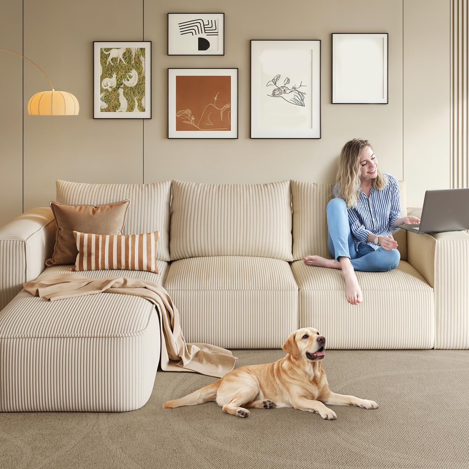 - Corduroy Luxury: Styled in soft, wrinkle-resistant corduroy fabric with striped texture, this L-shaped sectional adds a touch of modern sophistication to any home decor.