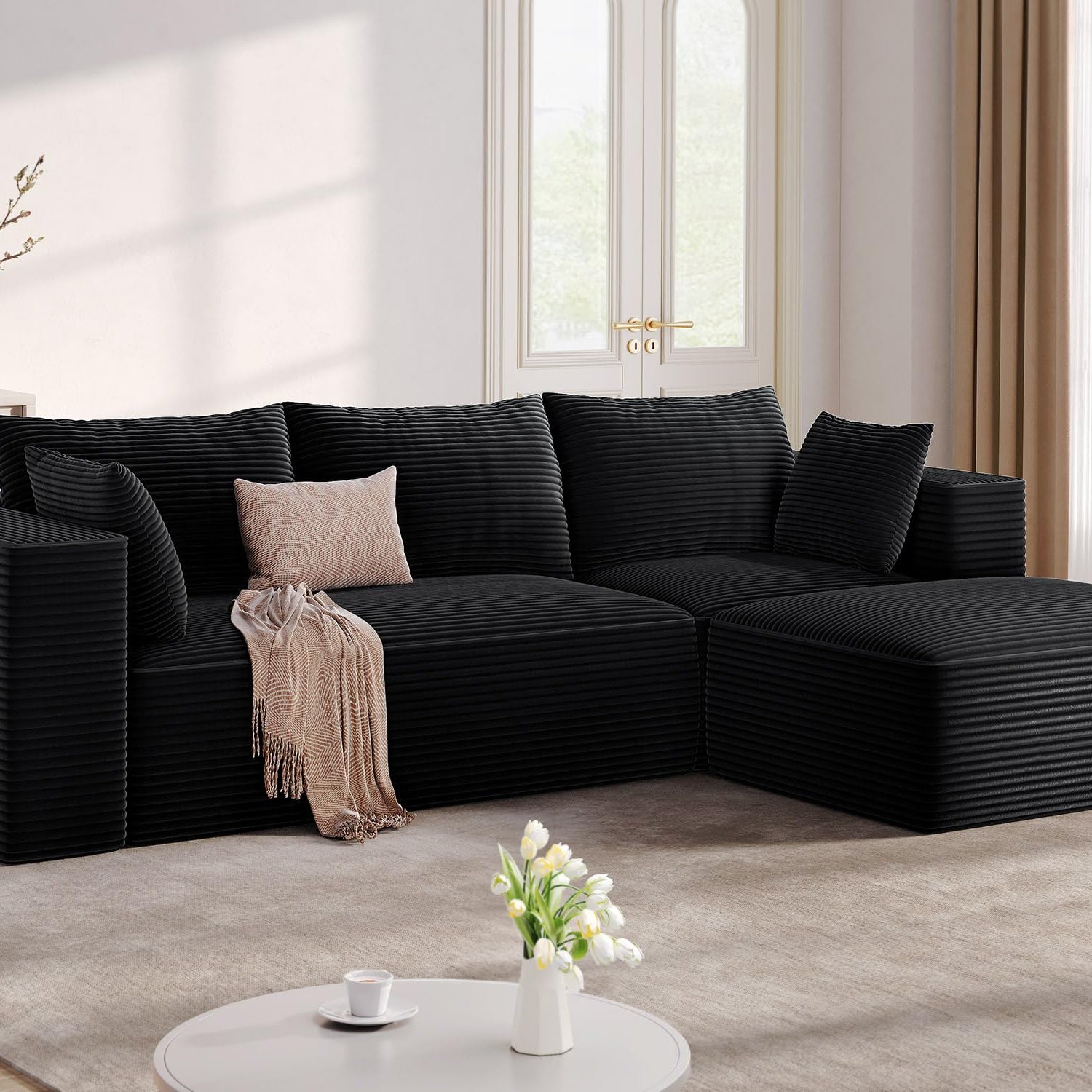 • Elegant & Durable Design: Wrapped in thick, soft corduroy with textured, eye-catching details, this sectional couch resists minor scratches and adds a modern touch to your space. Showcase your taste for living room furniture with this stunning piece