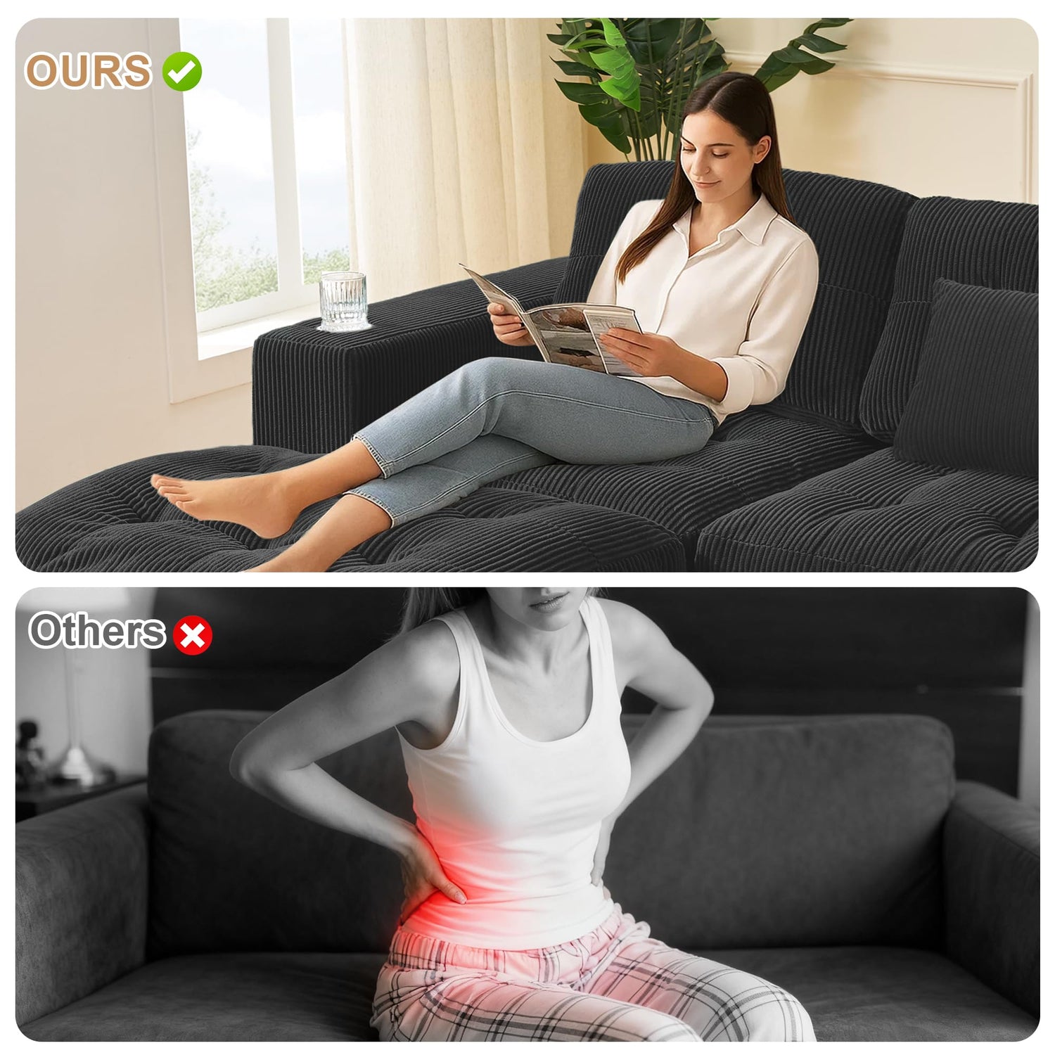• Modular Design for Free Combination: This L shaped sectional couch allows free movement of the ottoman—extend seating, prop up legs, or create play/reading nooks. Ideal as a modular cloud sectional for both small apartments and spacious living rooms, adapting to your lifestyle.