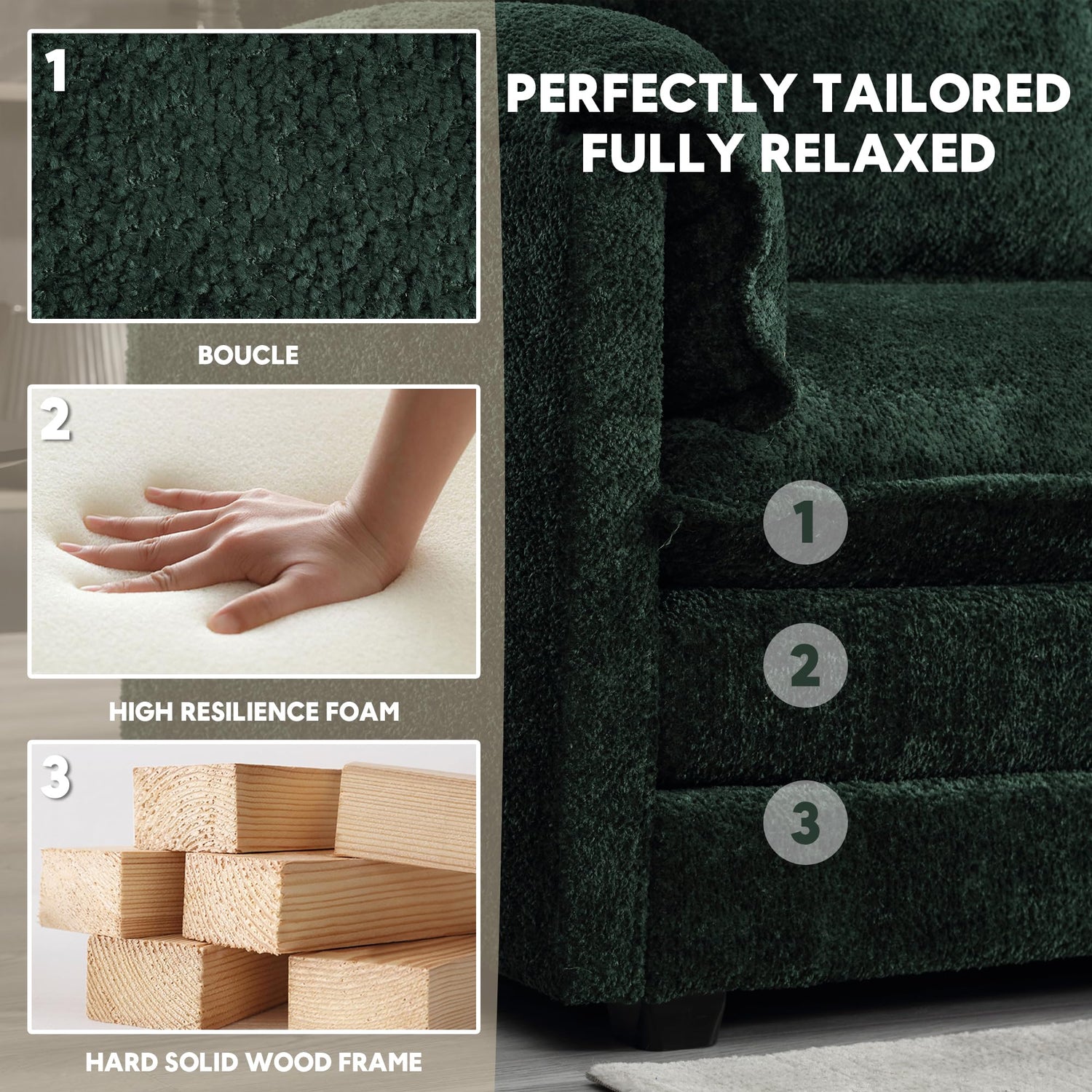ZEIINPA L Shaped Sectional Sofa Cloud Couch for Living Room, 112" Chenille Comfy Boucle Modular Sleeper Sofa, Modern Upholstery Sofa with Ottoman & Memory Foam, Emerald Green
