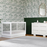 Babyletto Harlow Acrylic 3-in-1 Convertible Crib with Toddler Bed Conversion Kit in White with Acrylic Slats, Greenguard Gold Certified