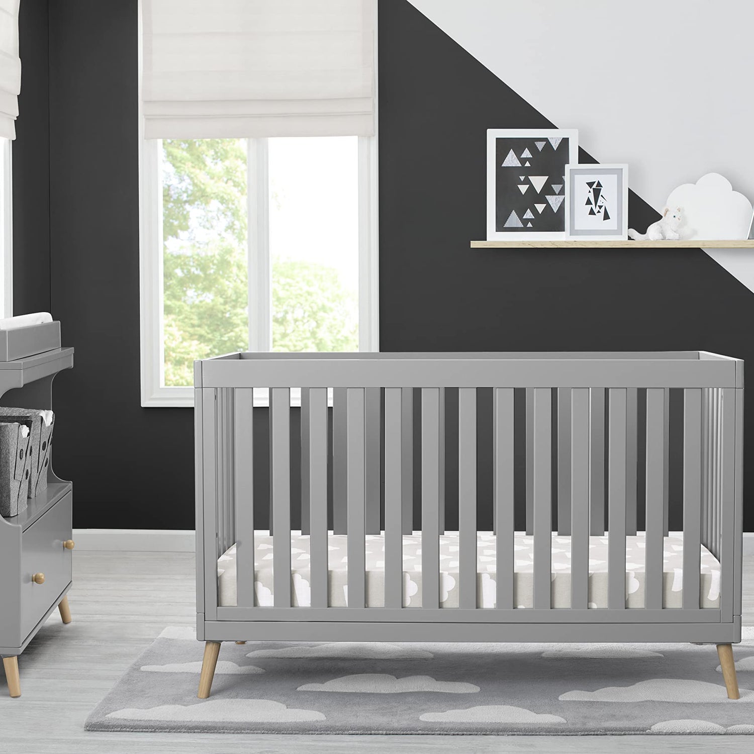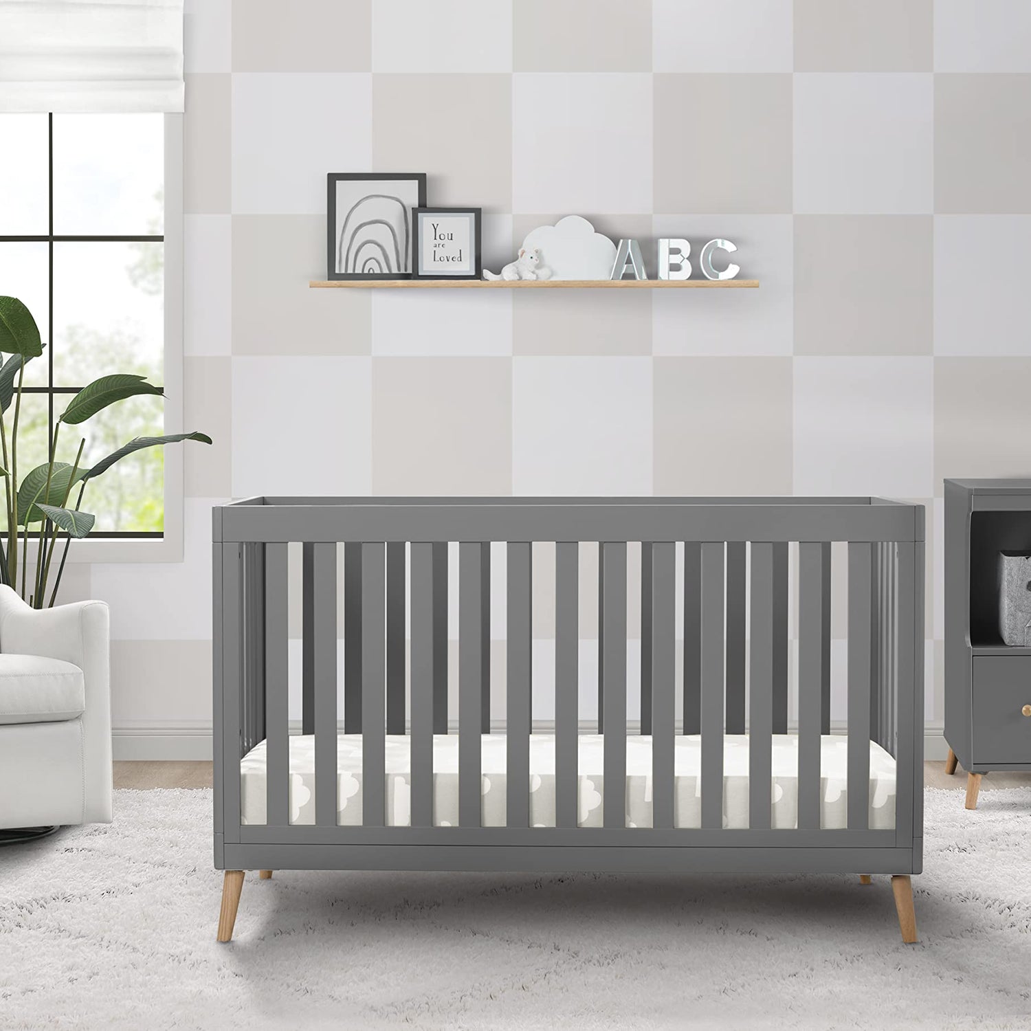 Delta Children Essex 4-in-1 Convertible Baby Crib, Grey with Natural Legs
