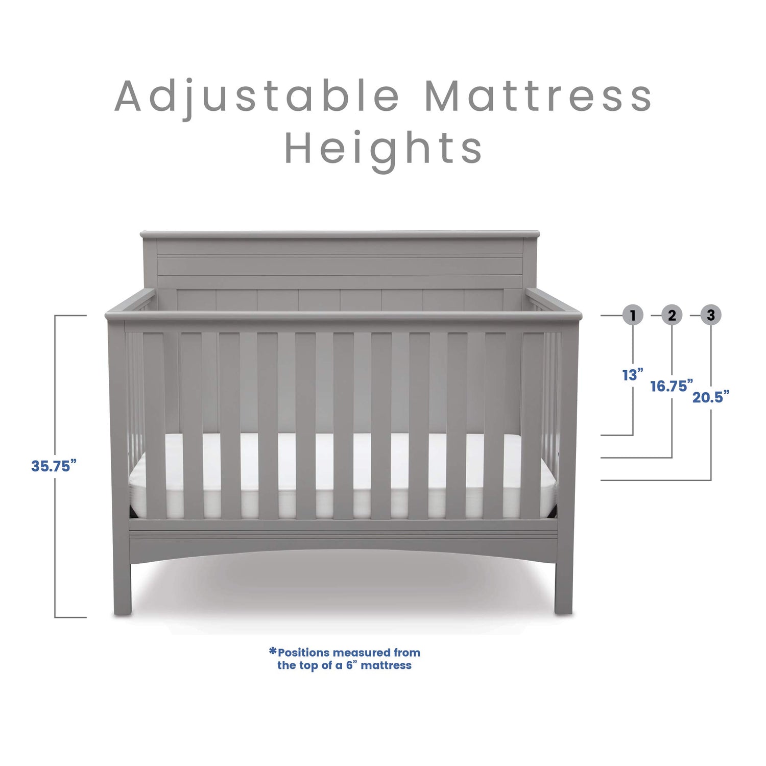 • GROWS WITH BABY: The 3 position mattress height adjustment on this crib allows you to lower the mattress as your baby begins to sit or stand