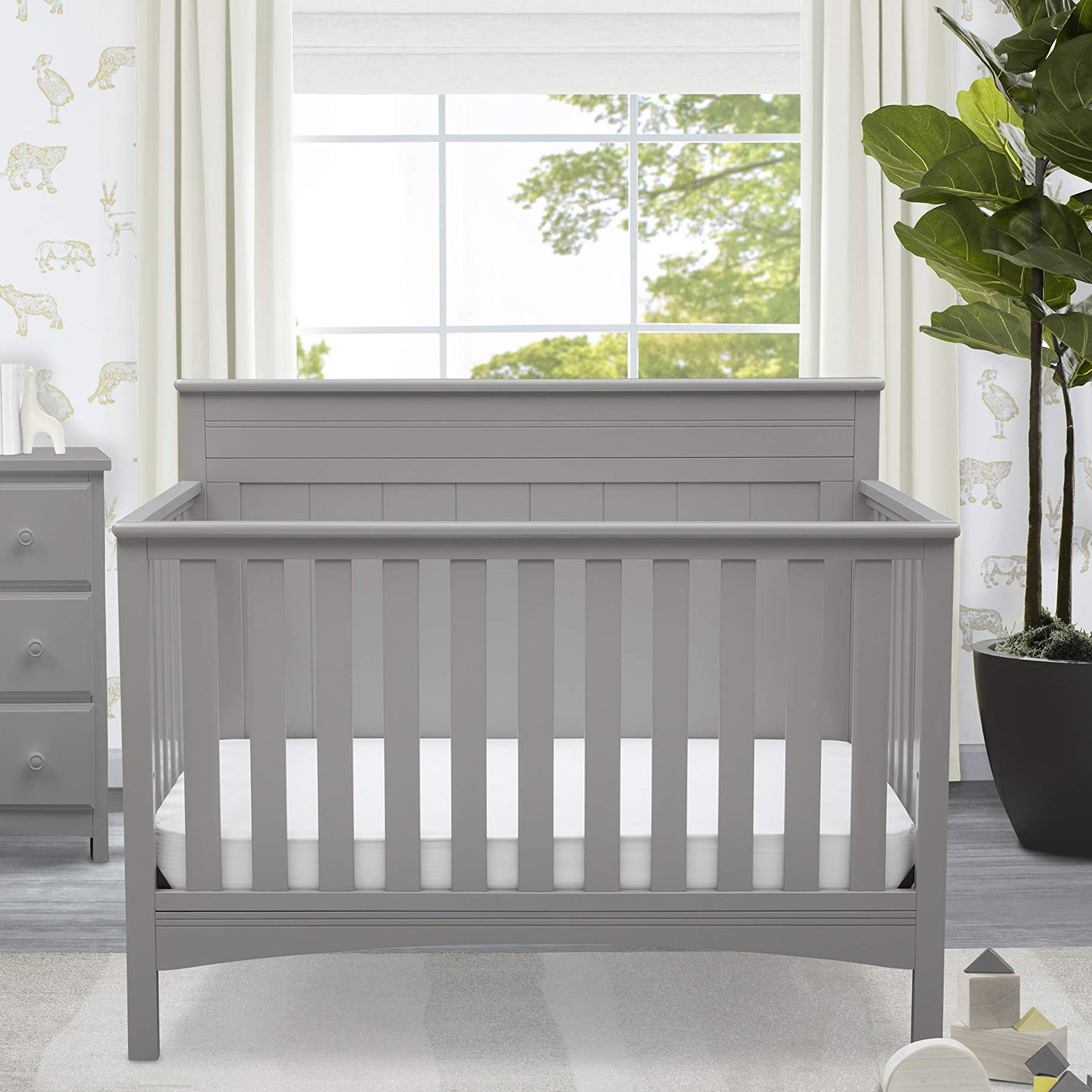 Delta Children Fancy 4-in-1 Convertible Baby Crib - Greenguard Gold Certified, Grey