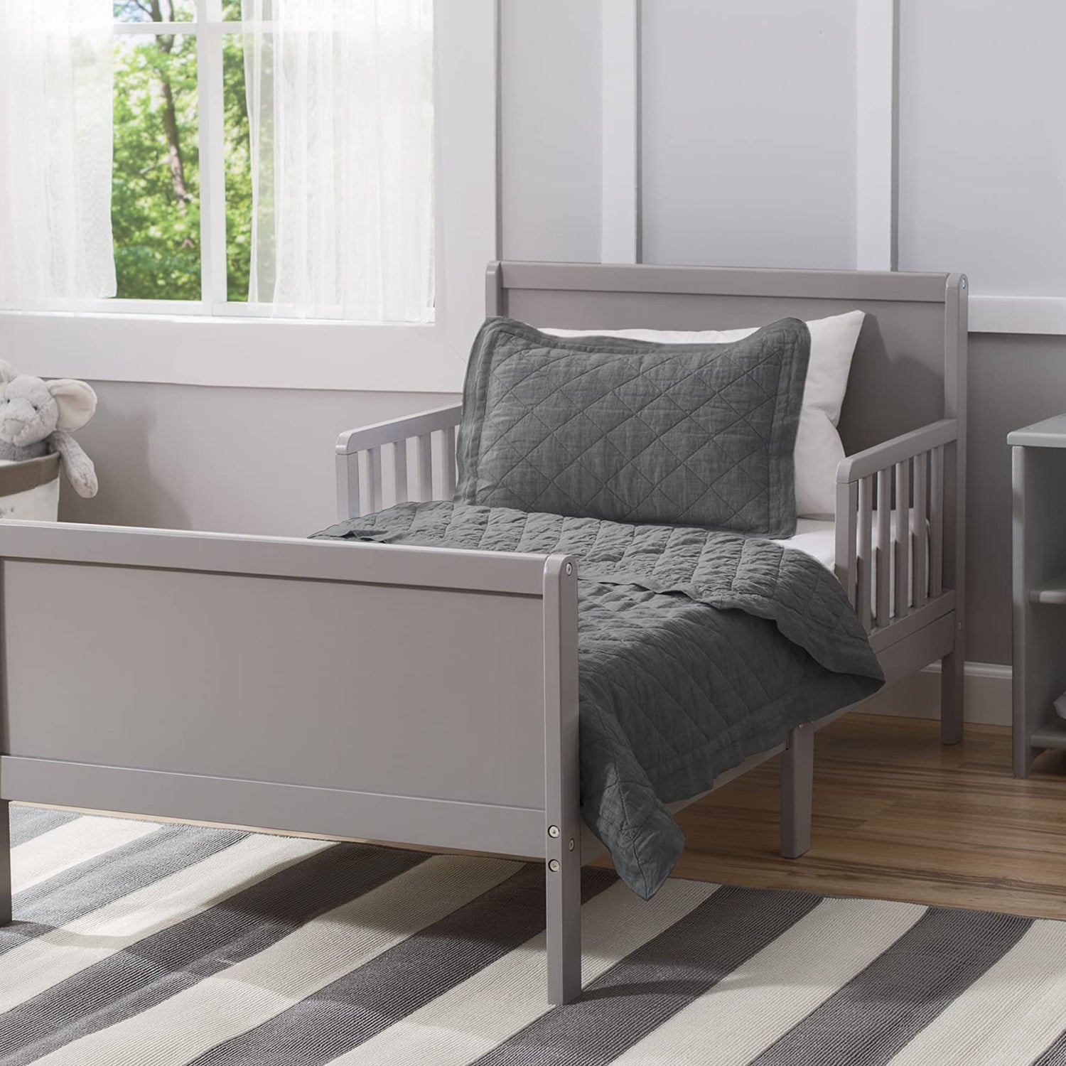 Delta Children Fancy Wood Toddler Bed - Greenguard Gold Certified, Grey