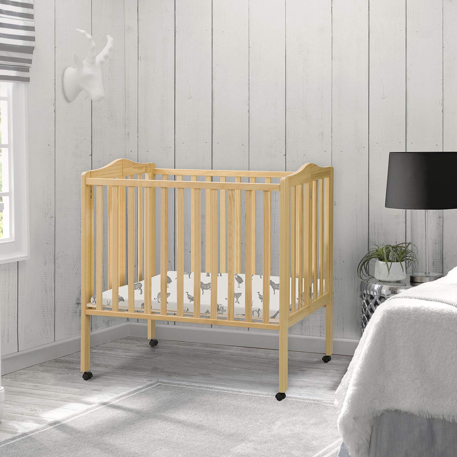 Delta Children Folding Portable Mini Baby Crib with 1.5-inch Mattress - Greenguard Gold Certified, Natural
