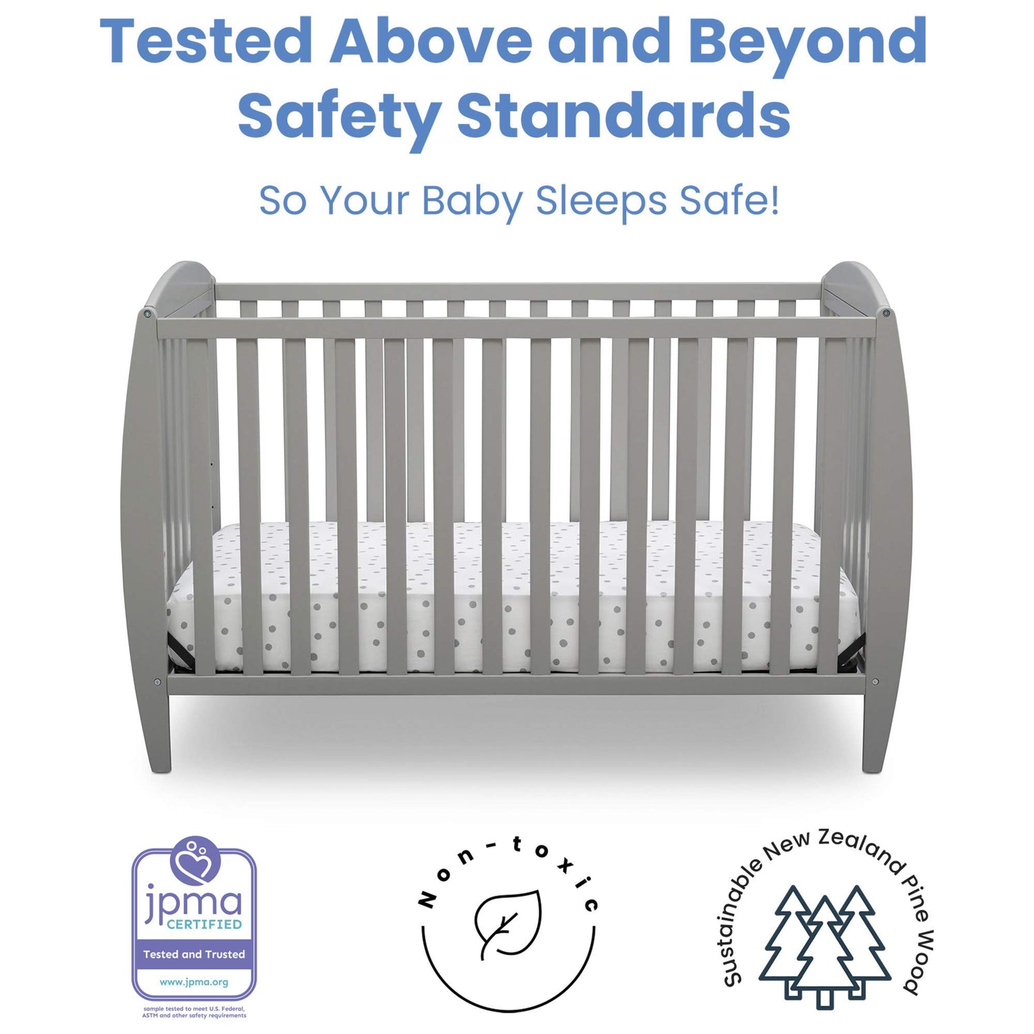 - WE PUT YOUR BABY'S SAFETY FIRST: This crib is JPMA certified to meet or exceed all safety standards set by ASTM | Tested for lead and other toxic elements to meet or exceed government and ASTM safety standards