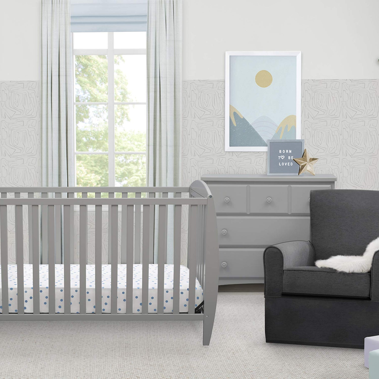 Delta Children Taylor 4-in-1 Convertible Baby Crib, Easy to Assemble, Sustainable New Zealand Wood, Grey