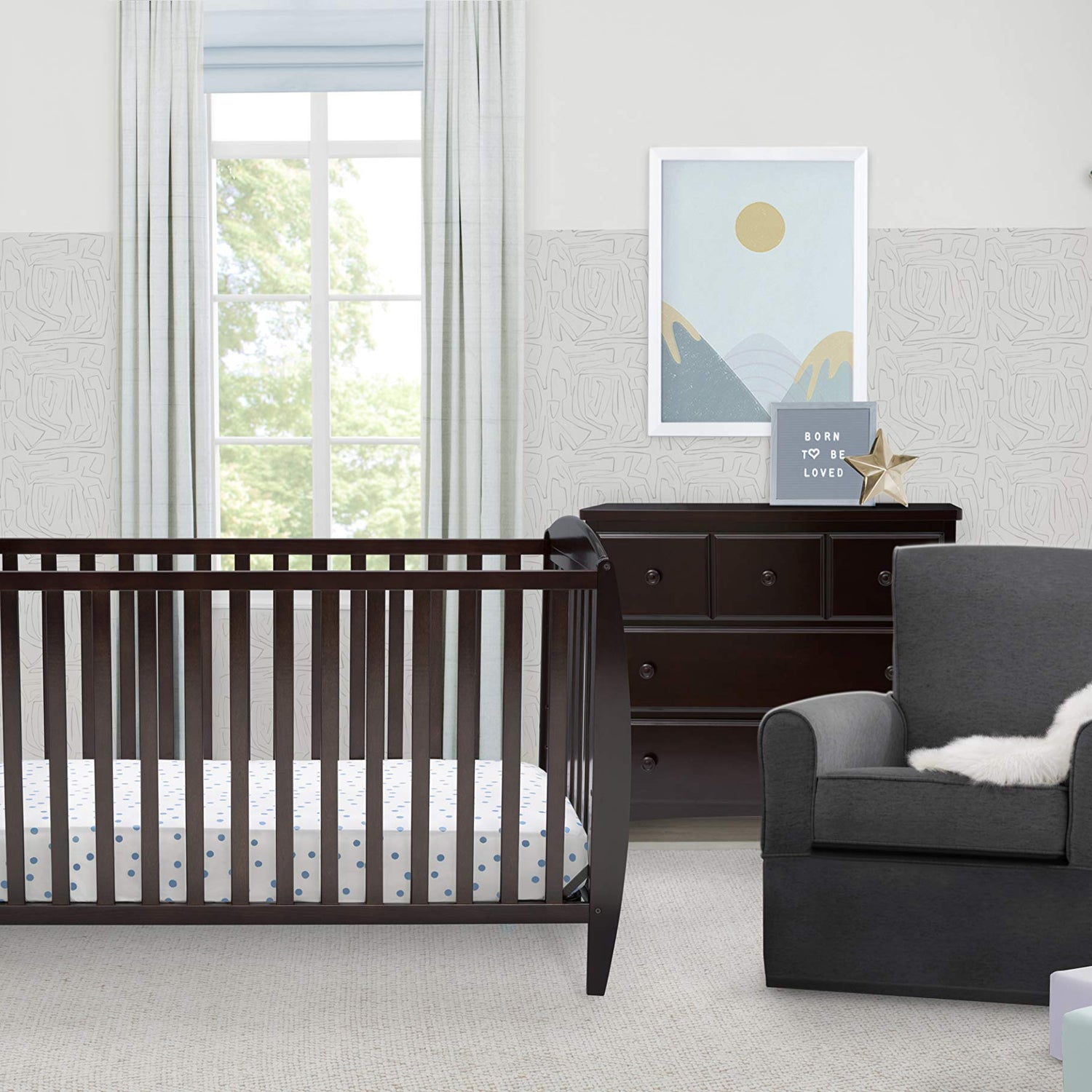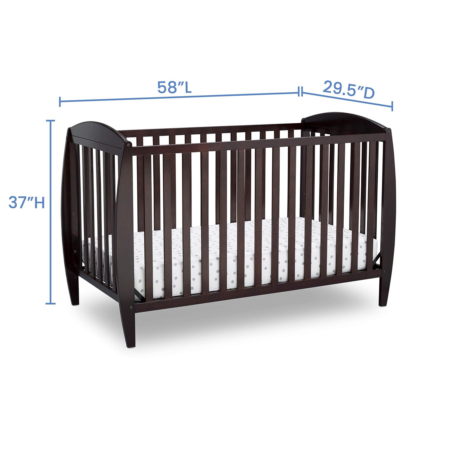 Details: Set the tone for a beautiful and calming nursery with the Taylor 4-in-1 Convertible Baby Crib from Delta Children. The crib's sleigh-style silhouette and open, airy slats puts a playful spin on classic style-just the thing you need to give your baby's room the perfect amount of personality. Built to grow with your child, this crib features an adjustable mattress height that allows you to lower the mattress as your baby begins to stand, plus it converts to a toddler bed, daybed and full size bed. An exceptional value, the Taylor 4-in-1 Convertible Baby Crib from Delta Children provides your little one the right bed for every age and stage. Available in Grey, Bianca White or Dark Chocolate, and coordinates with other furniture from Delta Children in the same finish color to complete your nursery. Delta Children was founded around the idea of making safe, high-quality cribs affordable for all families. That's why all Delta Children cribs are JPMA certified, and are tested above and beyond industry standards.