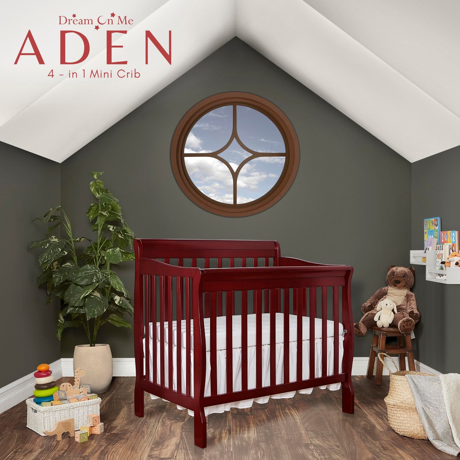 Dream On Me Aden 4-in-1 Convertible Mini Crib In Cherry, Greenguard Gold Certified, Non-Toxic Finish, New Zealand Pinewood, With 3 Mattress Height Settings