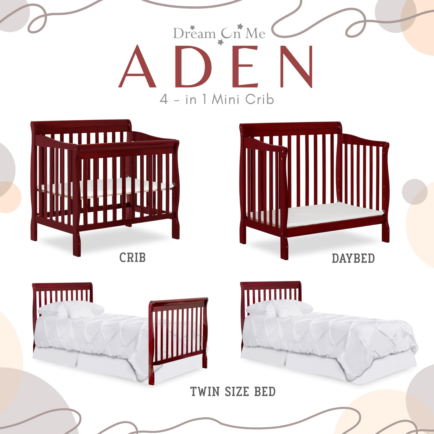 - 4-in-1 CONVERTIBILITY OPTIONS - The Aden grows along with your child . You can convert the crib into a mini daybed and a twin size bed and it has a convenient 3-position mattress support system (Twin Size Rail and Bed frame sold separately)