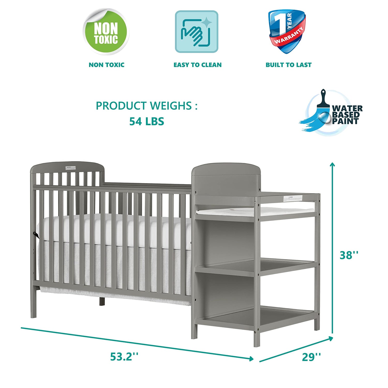 Dream On Me Anna 3-in-1 Full-Size Crib and Changing Table Combo in Steel Grey, Greenguard Gold Certified, Non-Toxic Finishes, Includes 1" Changing Pad, Wooden Nursery Furniture