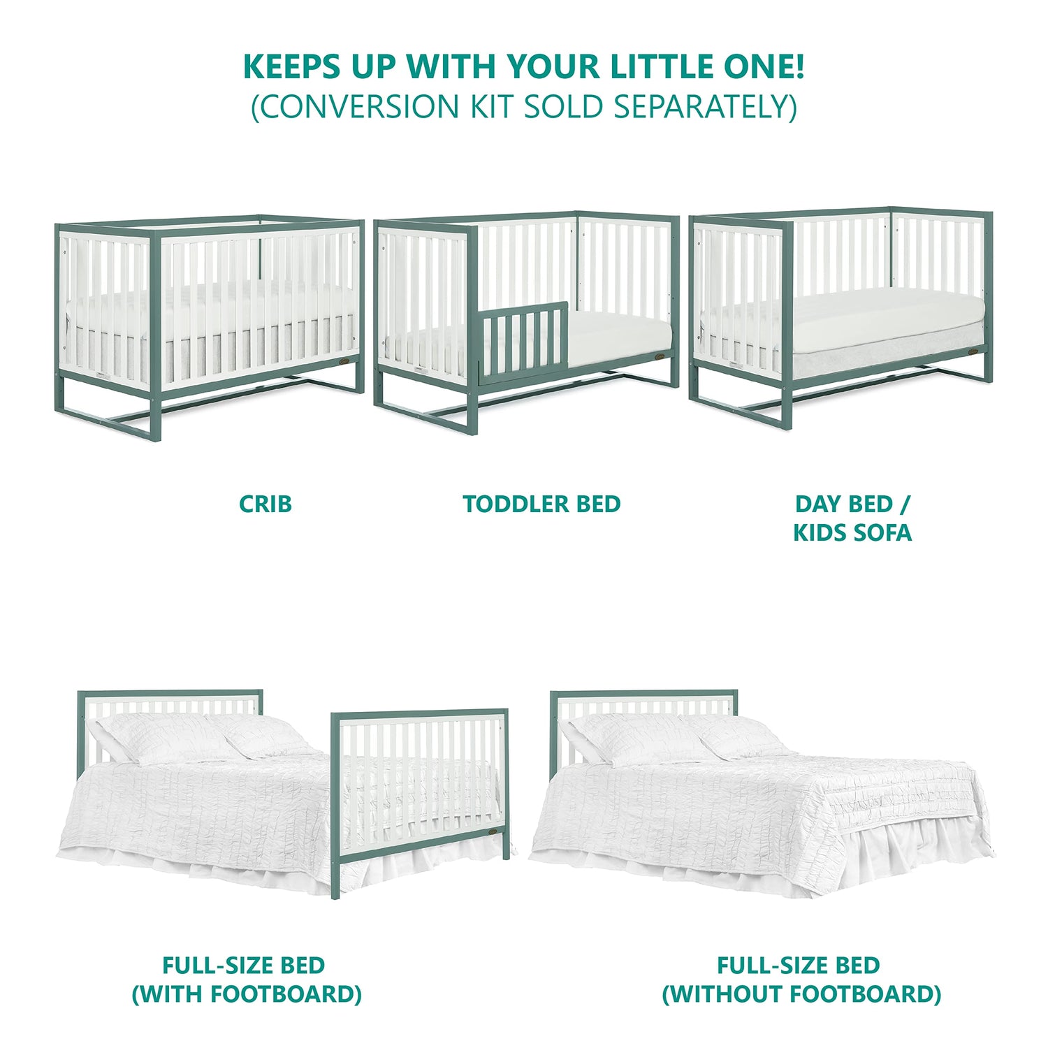 Dream On Me Arlo 5-in-1 Convertible Crib in Jungle Green, JPMA Certified, 3 Mattress Height Settings, Non-Toxic Finish, Made of Sustainable and Sturdy Pinewood