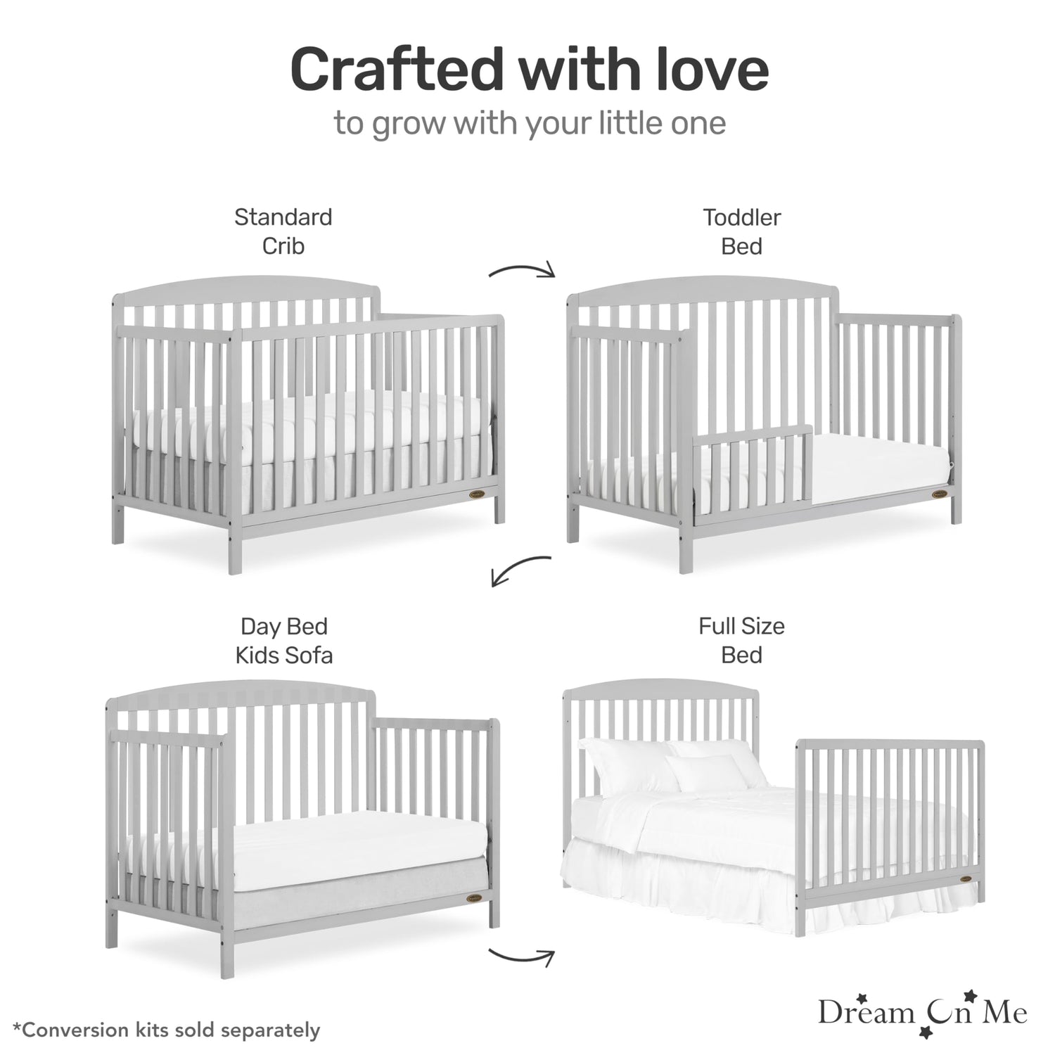Dream On Me JPMA & Greenguard Gold Certified Odelle 5 in 1 Convertible Crib in Pebble Grey, Built of Sustainable Pinewood, 3 Mattress Height Settings, Non-Toxic Water-Based Paint Finish