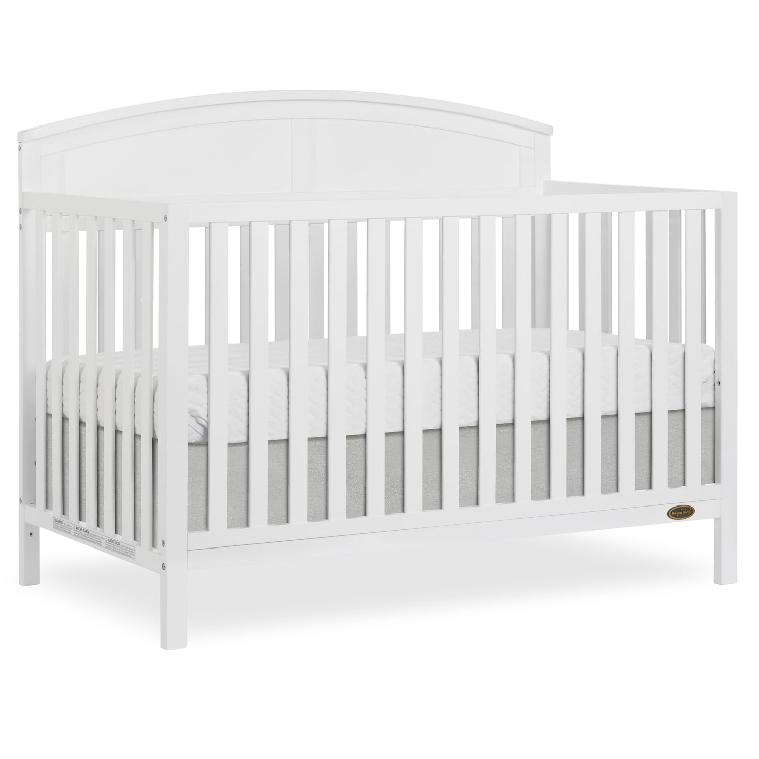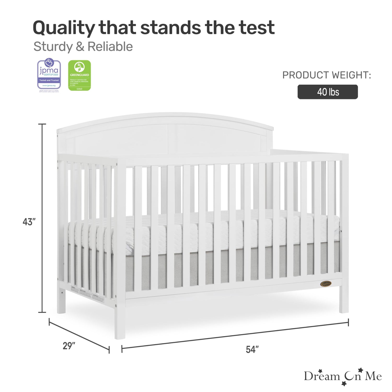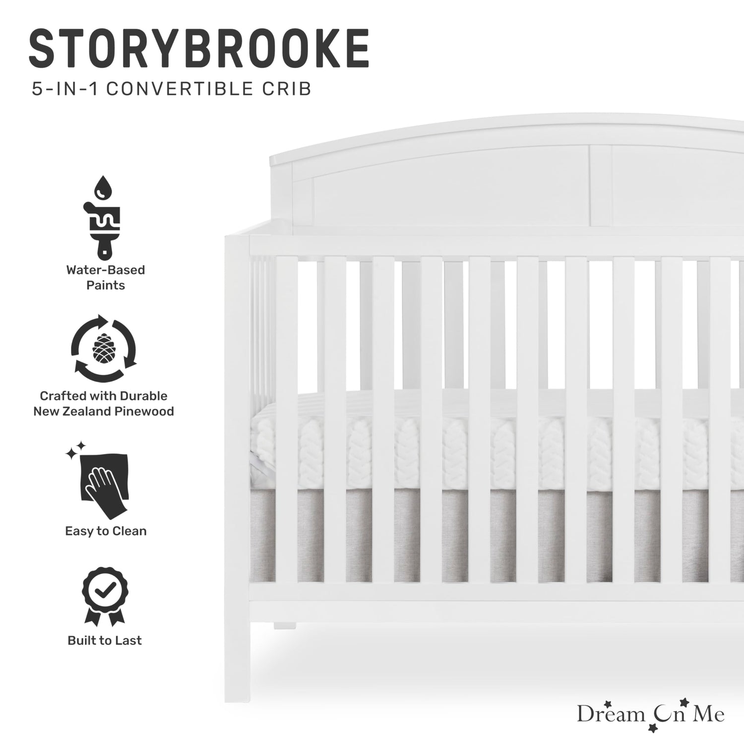 EVOLUR Dream On Me Storybrooke 5 in 1 Convertible Crib in White, JPMA & Greenguard Gold Certified,Built of Sustainable Pinewood, 3 Mattress Height Settings, Non-Toxic Water-Based Paint Finish