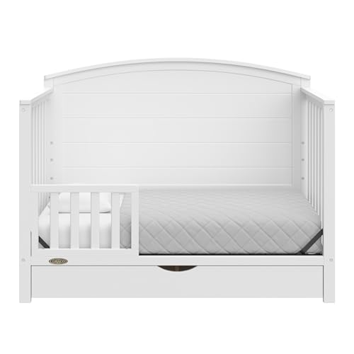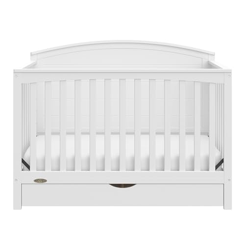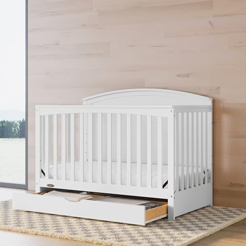 Graco Bellwood 5-in-1 Convertible Crib with Drawer (White) - GREENGUARD Gold Certified, Full-Size Storage Drawer, Converts to Toddler Bed and Full-Size Bed
