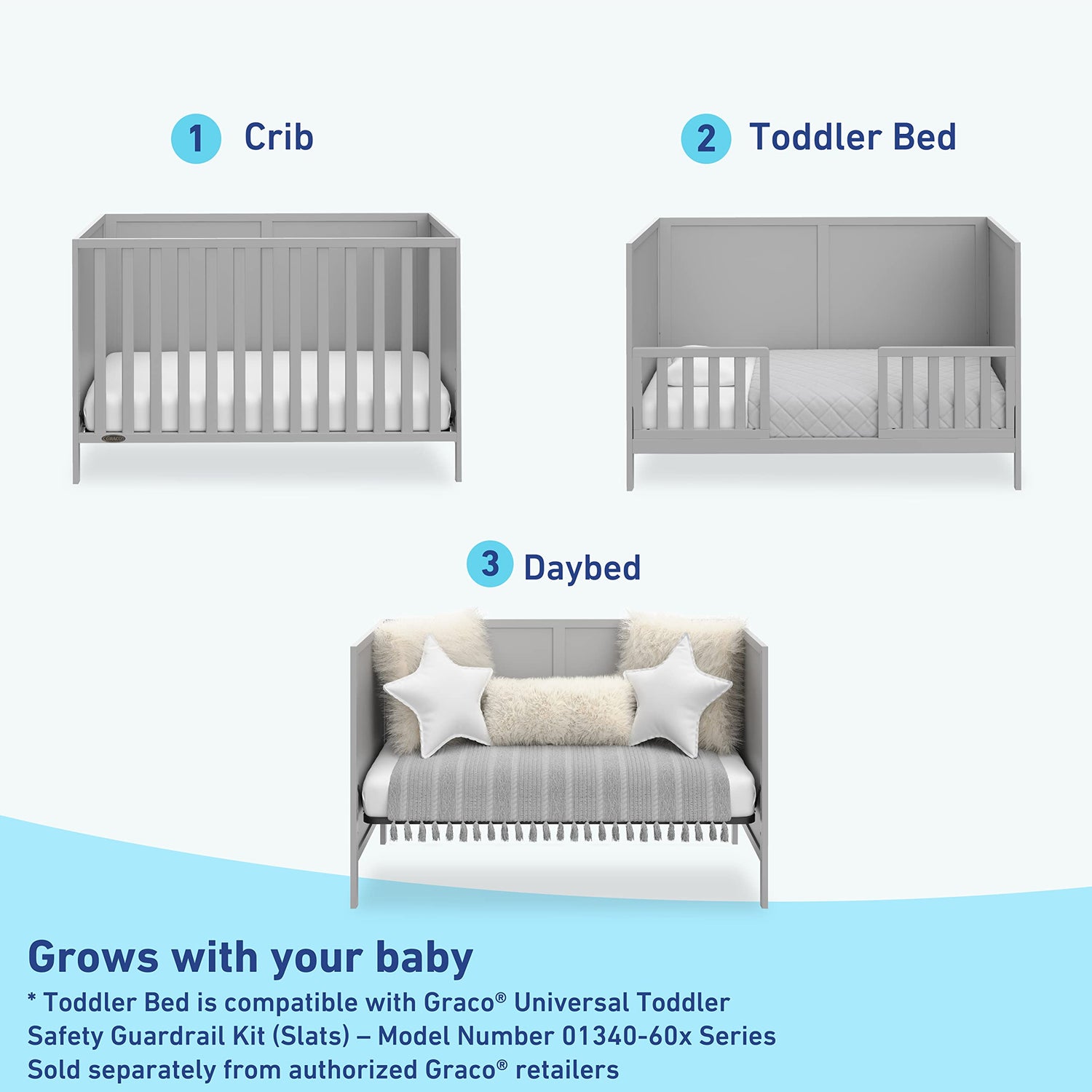 Graco Theo 3-in-1 Convertible Crib (Pebble Gray) - GREENGUARD Gold Certified, Converts to Toddler Bed & Daybed, Fits Standard Full-Size Crib Mattress, 4 Adjustable Mattress Heights